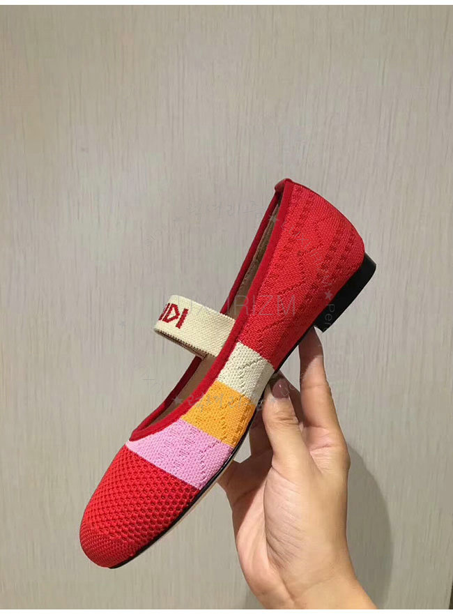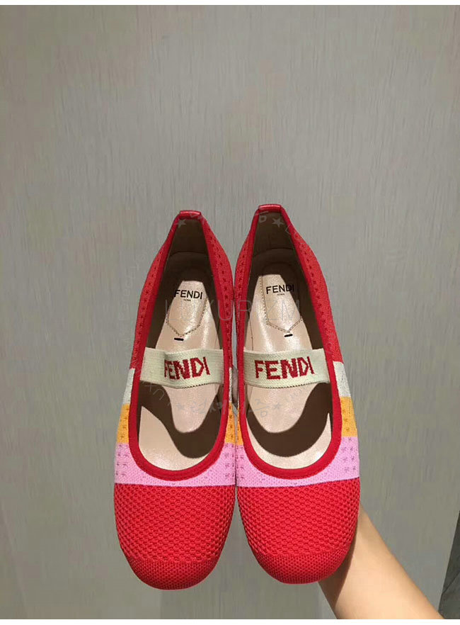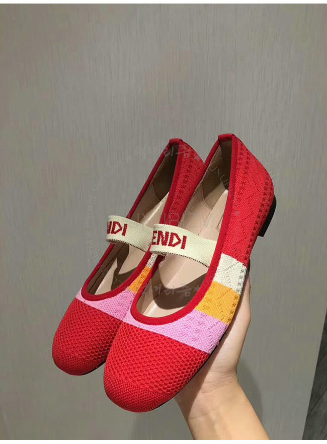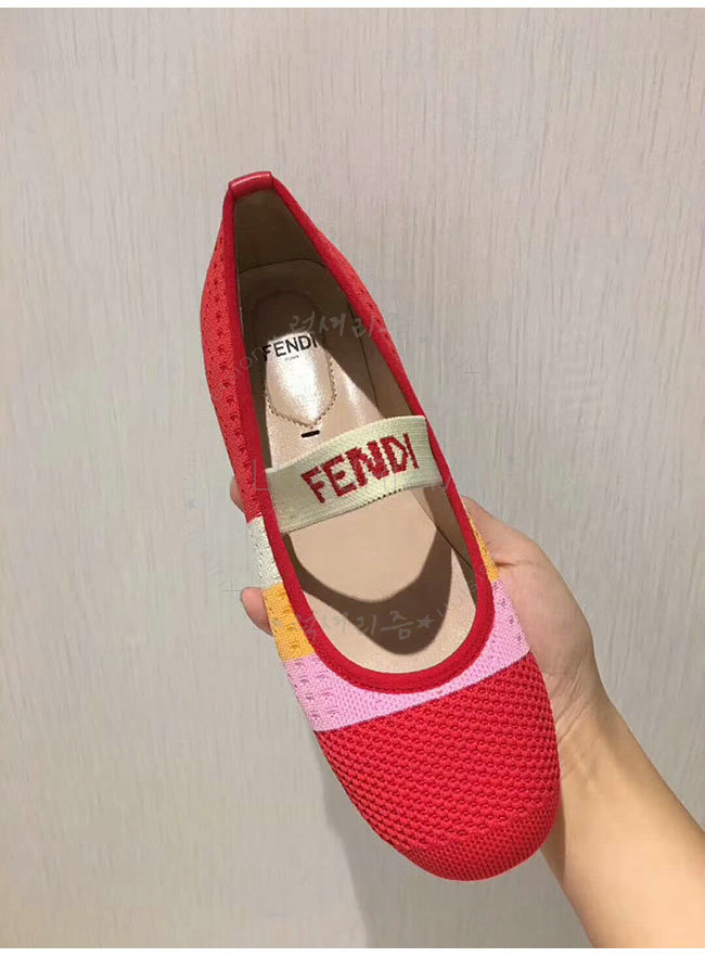 FENDI-8F65329 펜디 레드 스트레치 패브릭 로우 발레리나 여성용