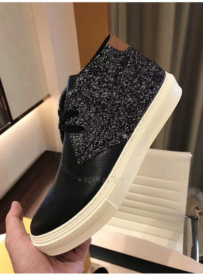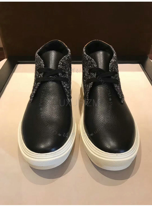 결을 살린 소가죽 및 트위드 소재로 선보이는 하이 더비입니다.고무 밑창을 더했습니다.