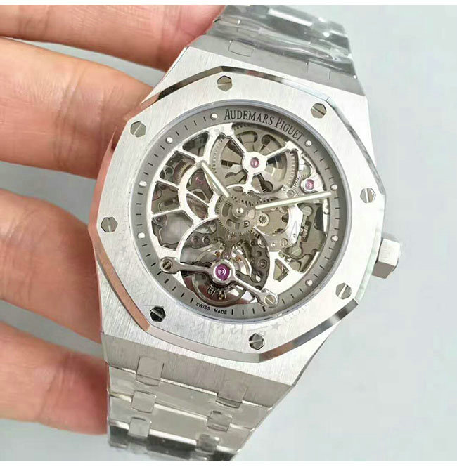-스테인레스 스틸 케이스/사파이어 글래스 투명 케이스 백/오데마 피게 핸즈.