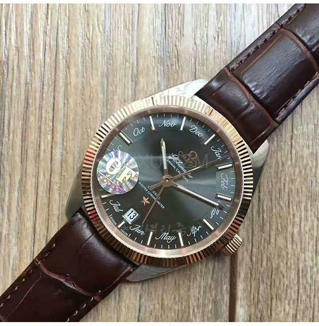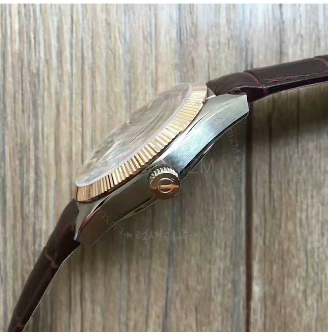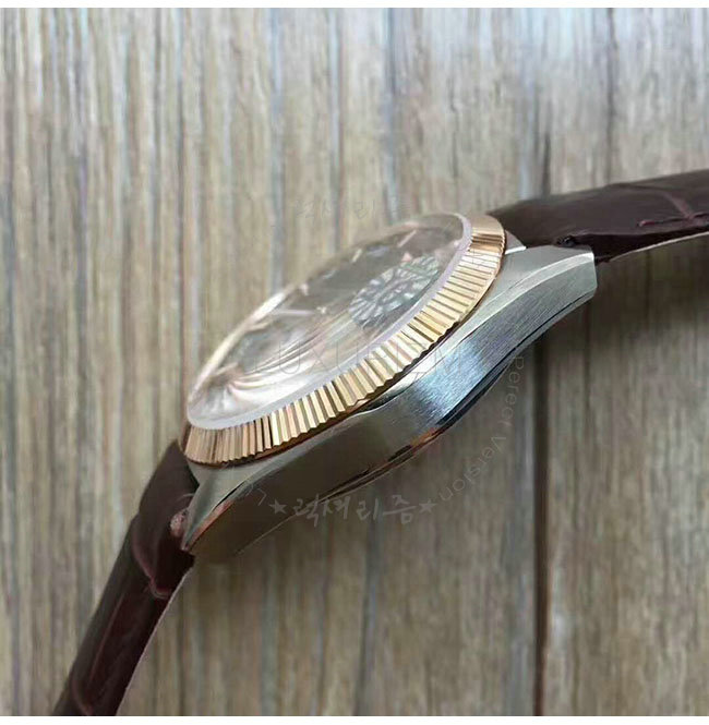 -자동 와인딩 무브먼트/6시 방향 날짜창/ 플루티드 베젤/골드 핸즈및인덱스.