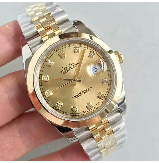 [스페셜오더]ROLEX-롤렉스 오이스터 데이트저스트 다이아 인덱스 옐로우 골드 스틸 샴페인다이얼 시계 41mm