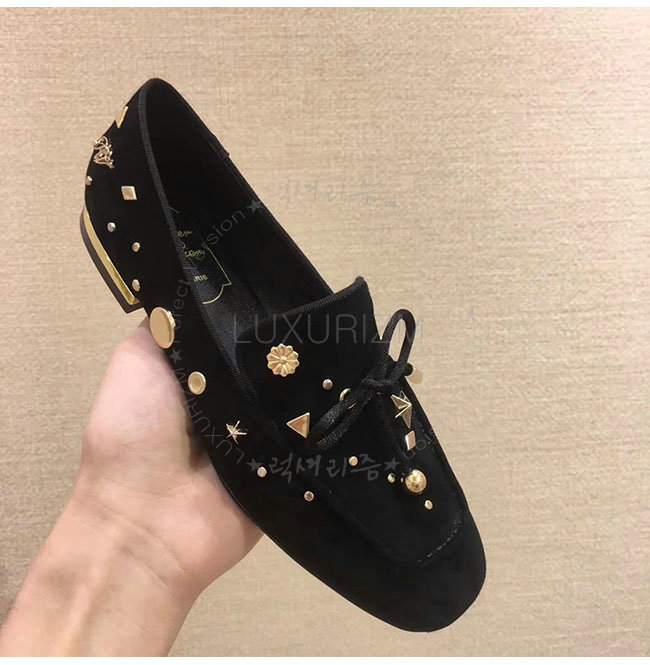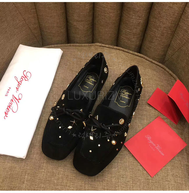 ROGER VIVIER-44919630 로저비비에 블랙 벨벳 아스트르 스터드 로퍼 여성용