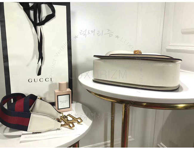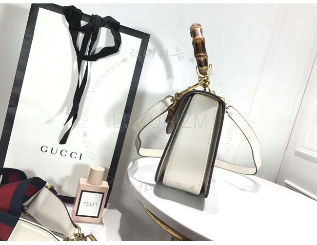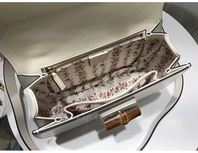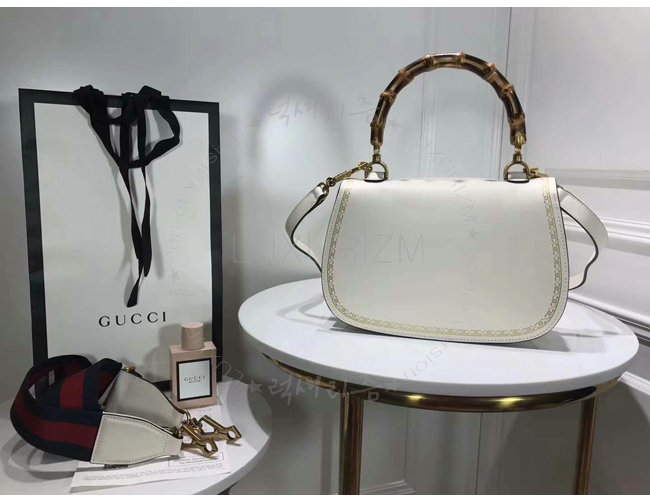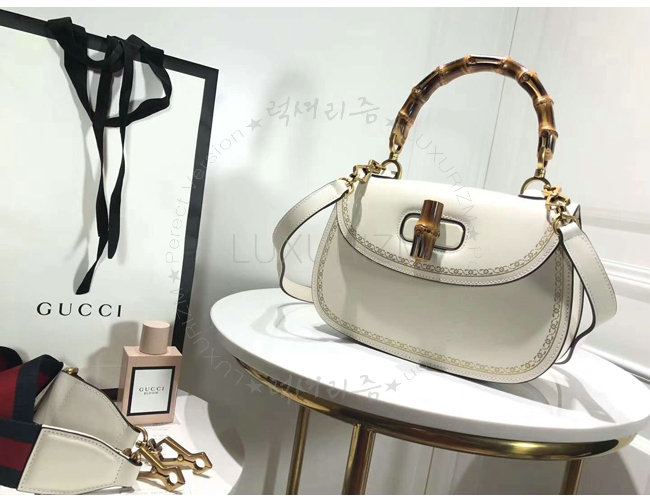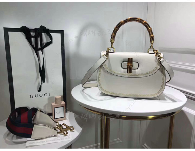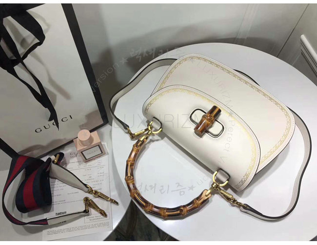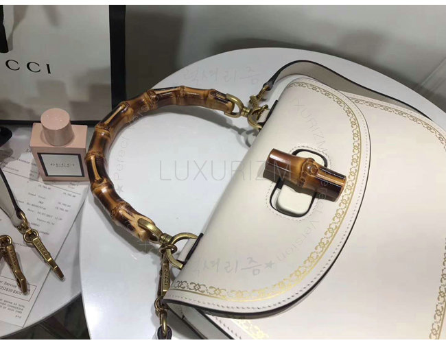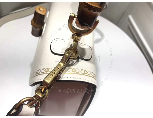 [스페셜오더]GUCCI-495880 9169 구찌 화이트 가죽 클래식 프레임 프린트 탑 핸들 밤부 백