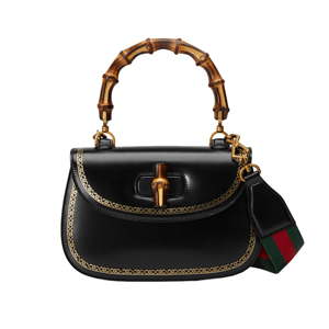 [스페셜오더]GUCCI-495880 8915 구찌 블랙 가죽 클래식 프레임 프린트 탑 핸들 밤부 백