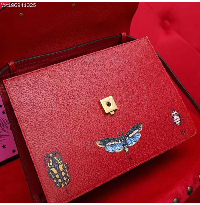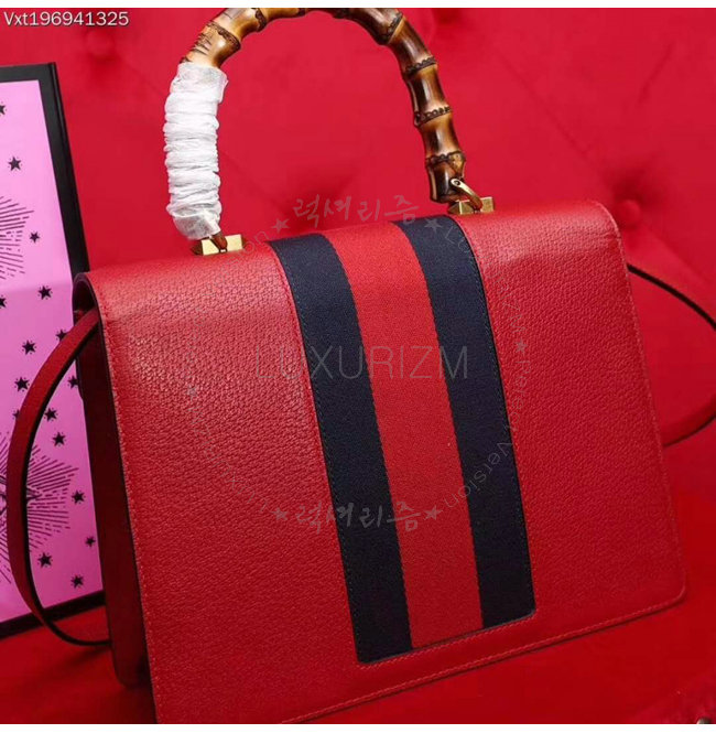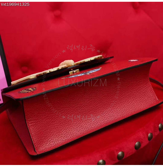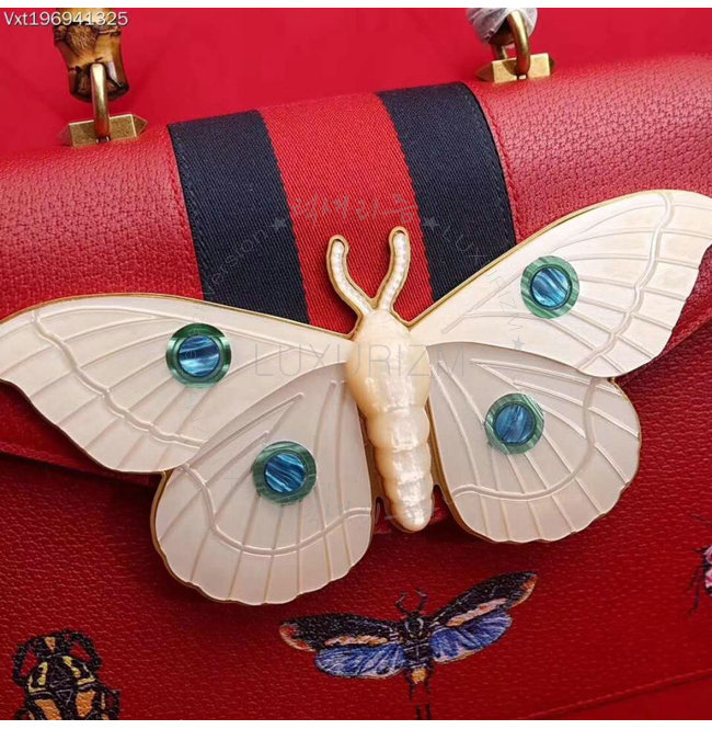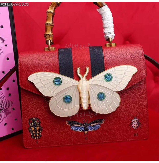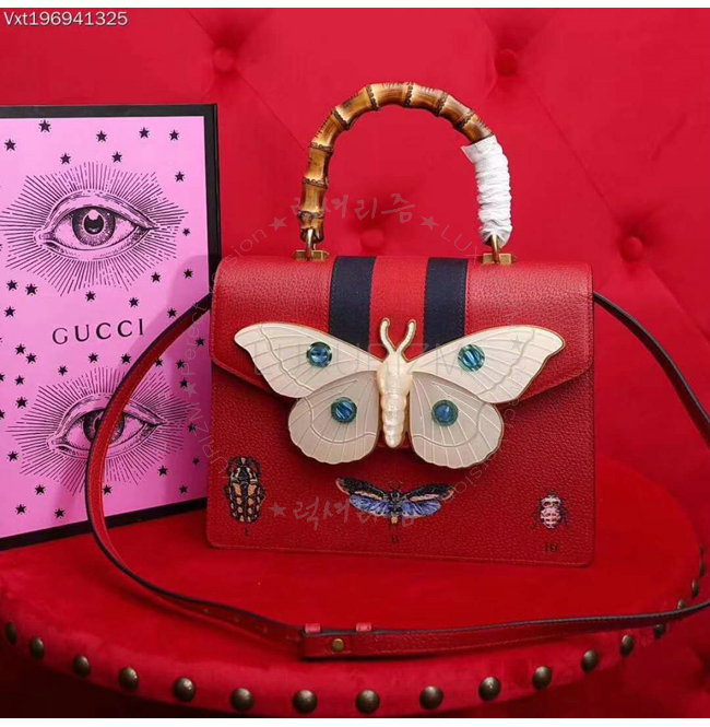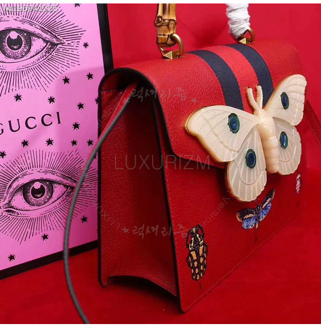 [스페셜오더]GUCCI-488691 6441 구찌 레드 가죽 나방 트리밍 탑 핸들 백