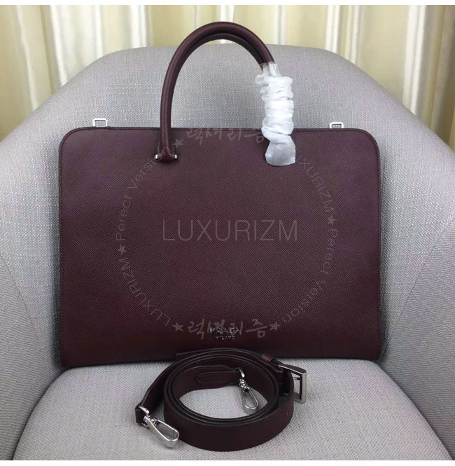 [스페셜오더]PRADA-2VN006 프라다 사피아노 뀌르 가죽 와인 브리프케이스