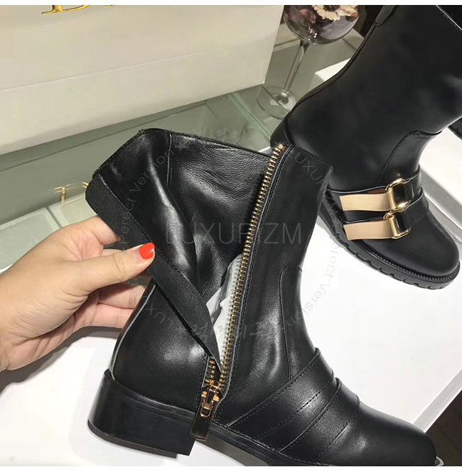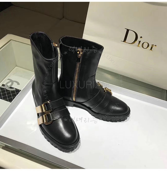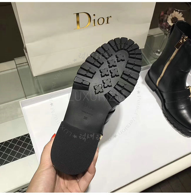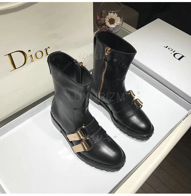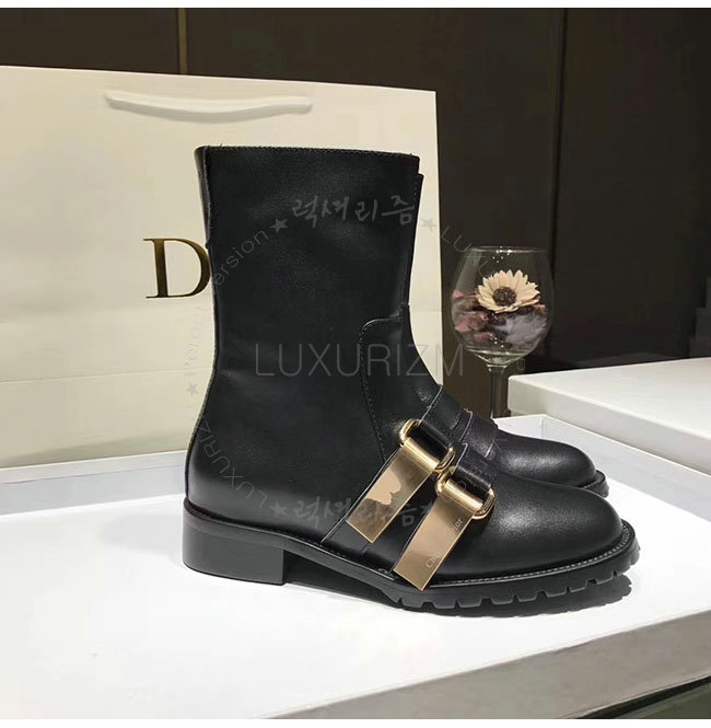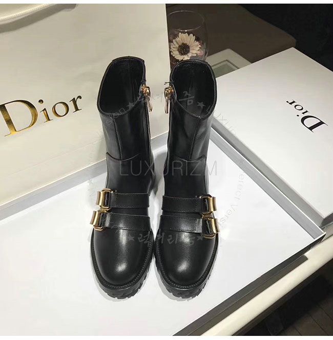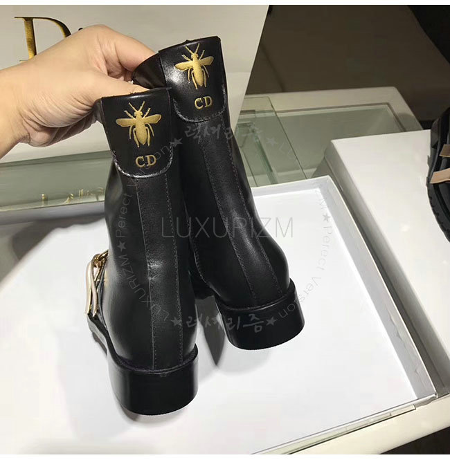 DIOR-KDI426 디올 블랙 송아지 가죽 앵클 부츠 여성용