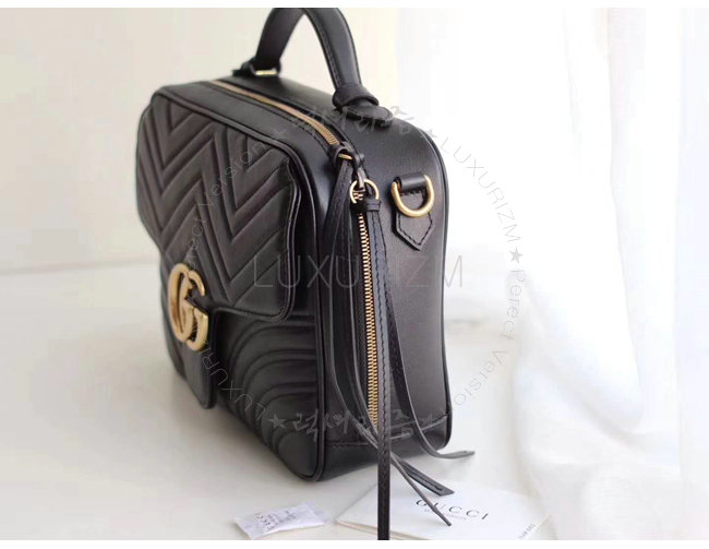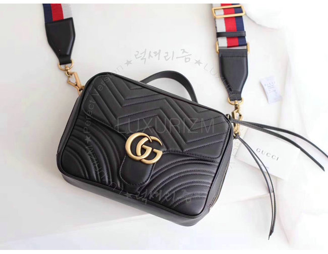 -구찌 GG Marmont 블랙 마틀라세 가죽 숄더백 카톡 HKLUXURIZM