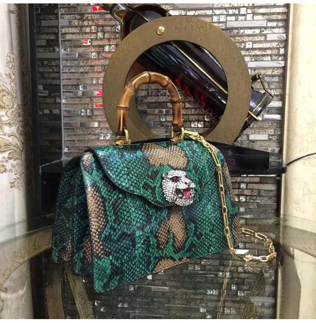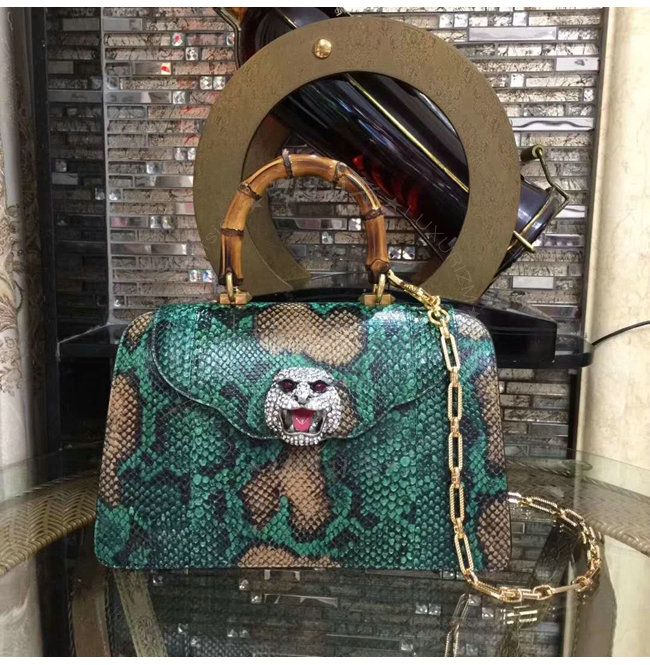 [스페셜오더]GUCCI-495881 3159 구찌 Python 디테일 가죽 탑 핸들 백