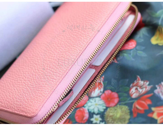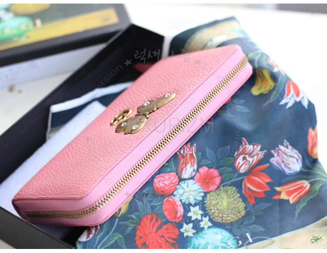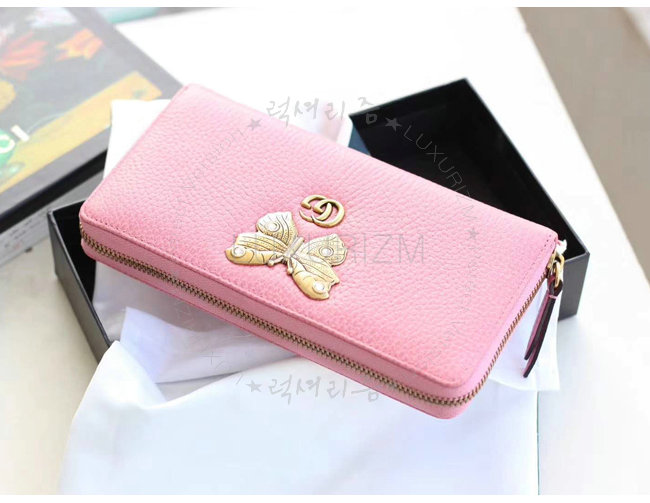 [스페셜오더]GUCCI-499363 5969 구찌 라이트 핑크 가죽 나비 스터드 집 어라운 월릿