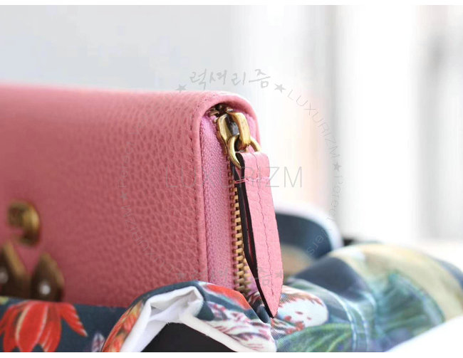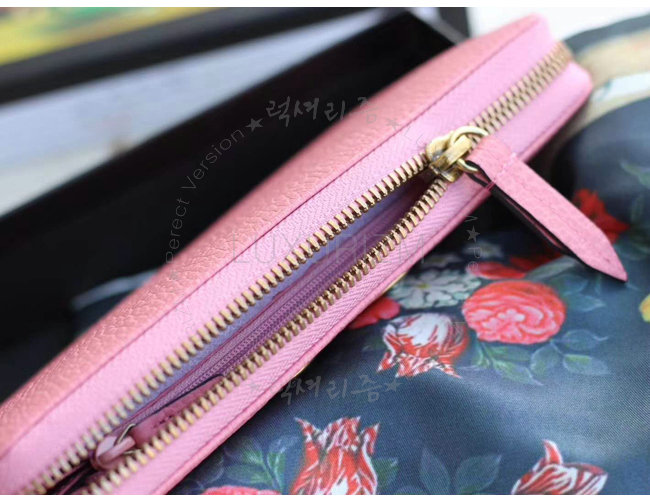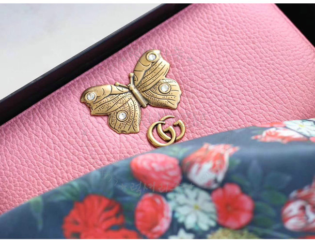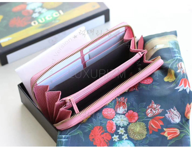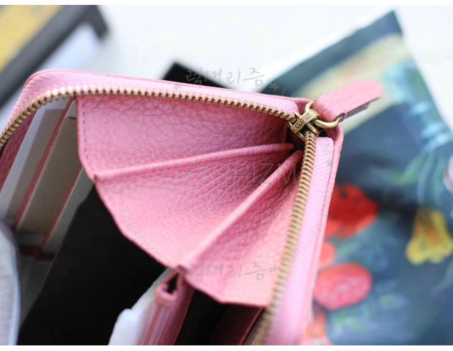 [스페셜오더]GUCCI-499363 5661 구찌 브라이트 핑크 가죽 나비 스터드 집 어라운 월릿