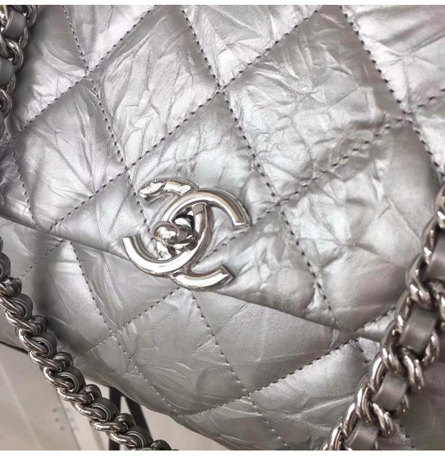 [스페셜오더]CHANEL-A91975 샤넬 메탈릭 크럼플드 카프스킨 실버 플랩 백