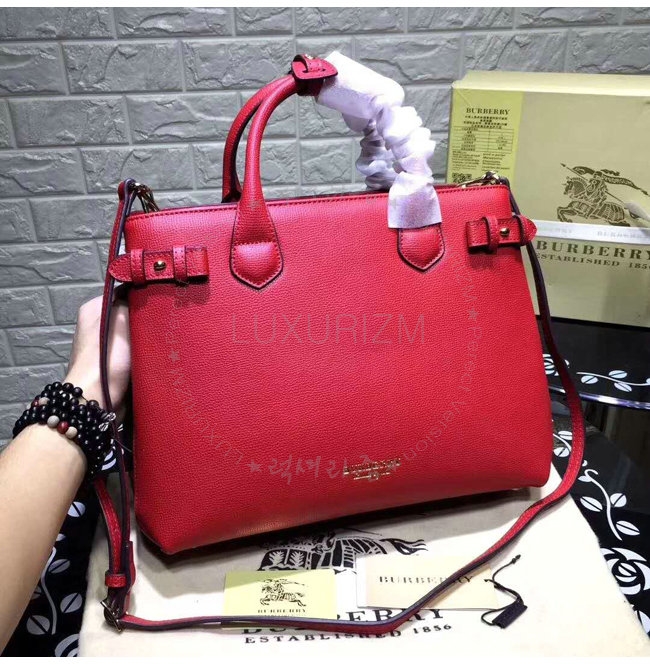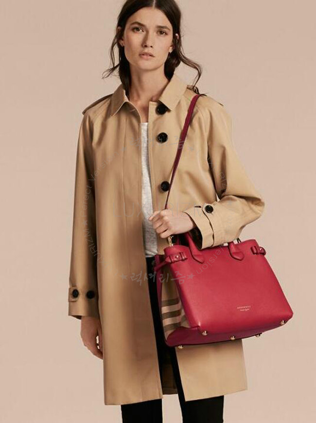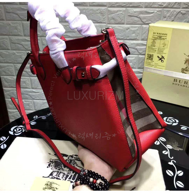 BURBERRY-40494471 버버리 미디엄 러셋 레드 가죽 하우스 체크 배너