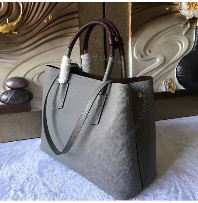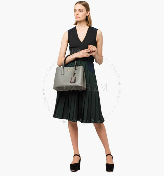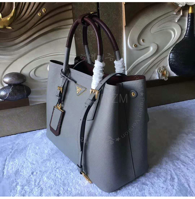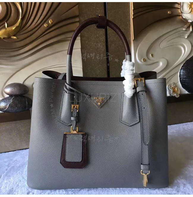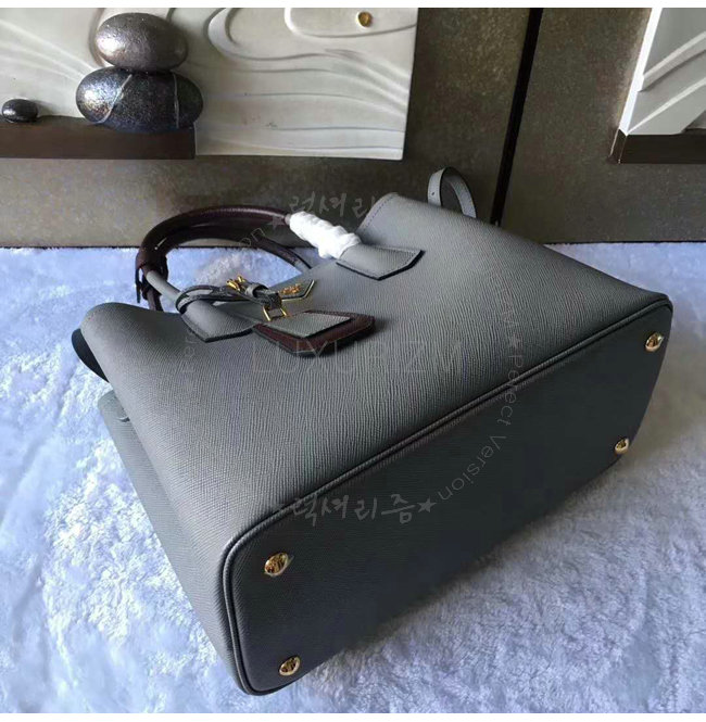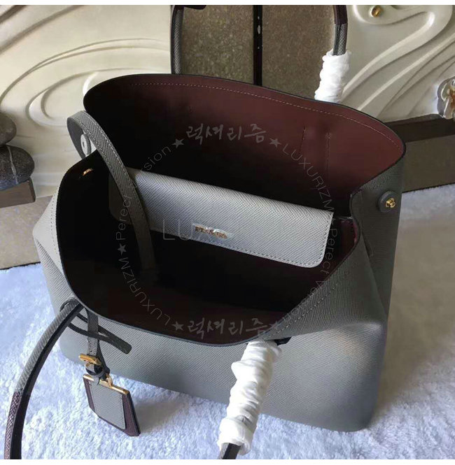 [스페셜오더]PRADA-1BG775 프라다 사피아노 가죽 투톤 핸들 그레이 더블 백
