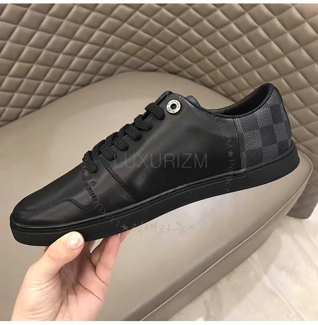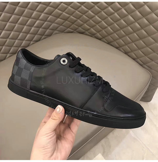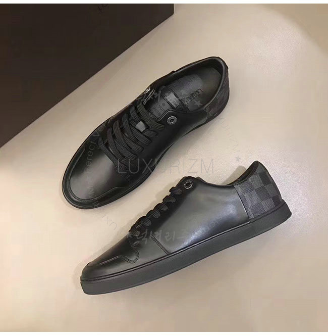 LOUIS VUITTON-1A1IMG 루이비통 블랙 가죽 라인업 스니커즈 남성용