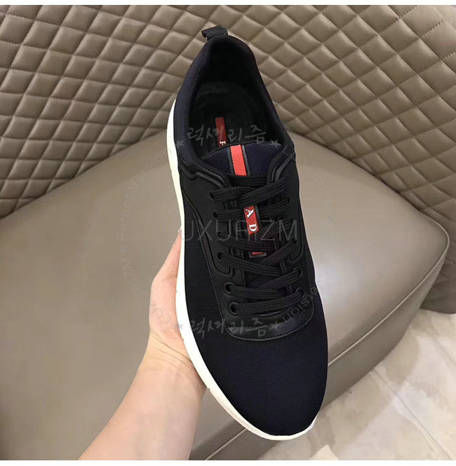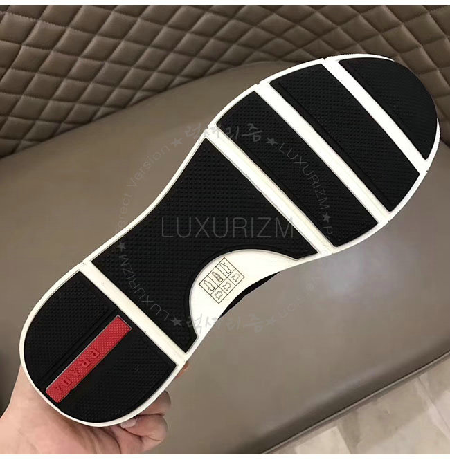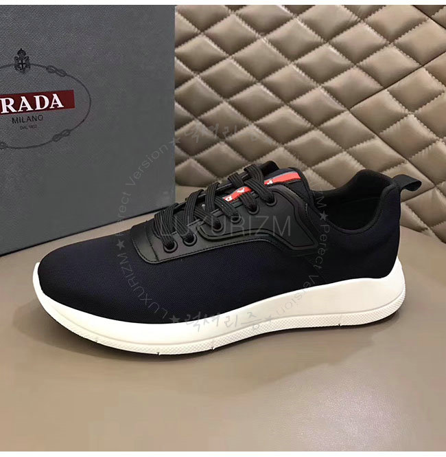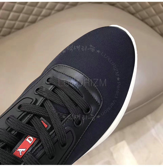 PRADA-4E3148 프라다 블랙 가죽 트림 장식의 나일론 스니커즈 남성용