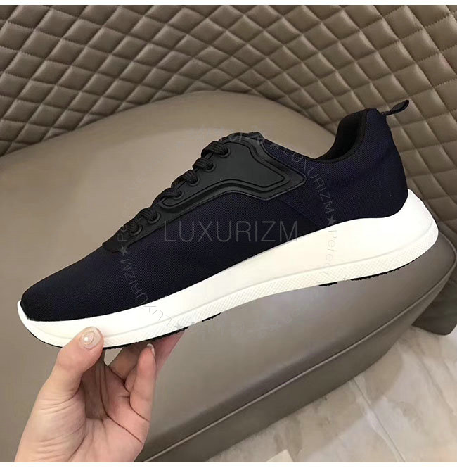 PRADA-4E3148 프라다 네이비 가죽 트림 장식의 나일론 스니커즈 남성용