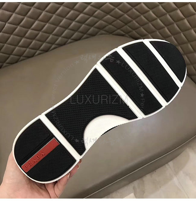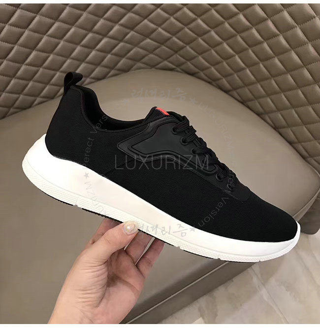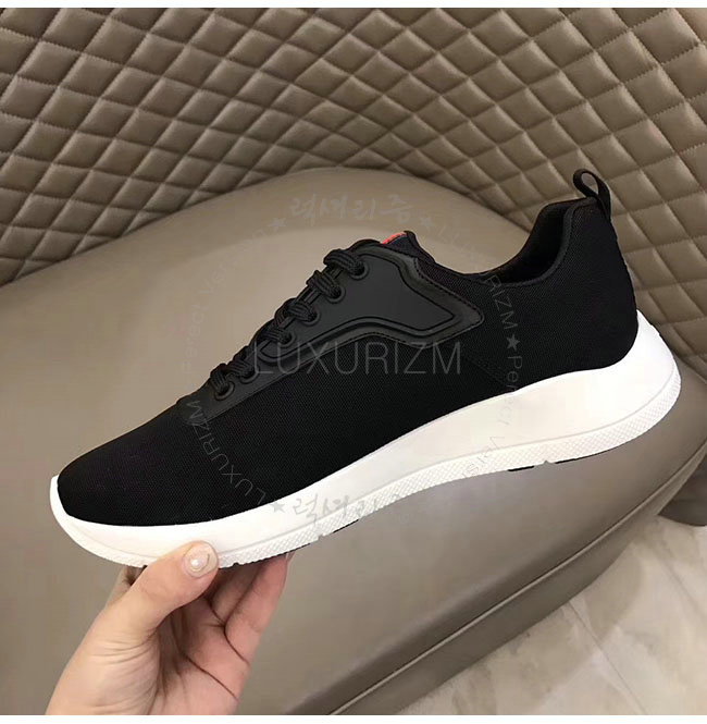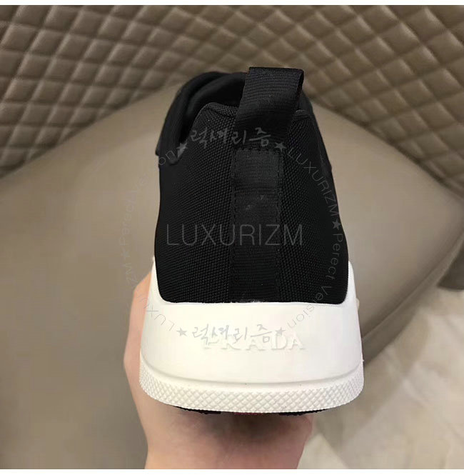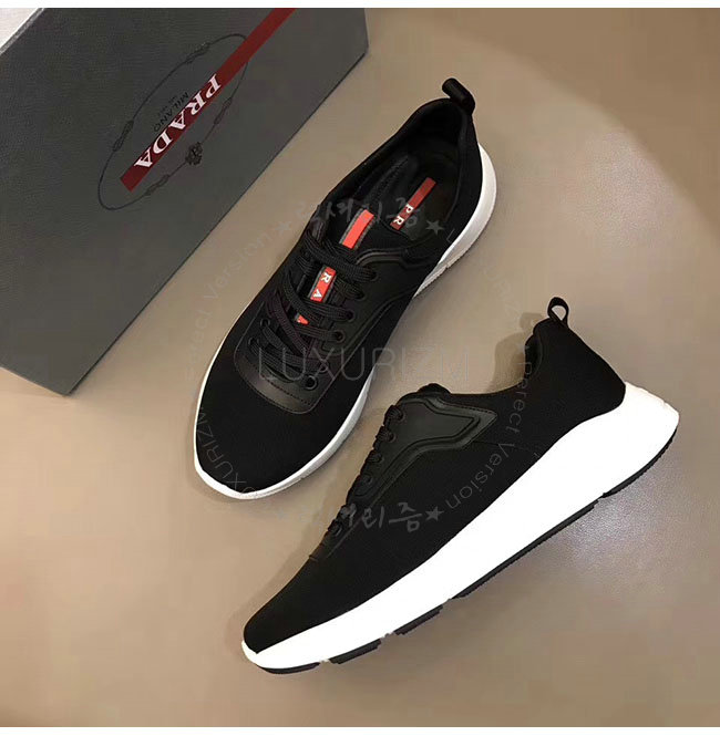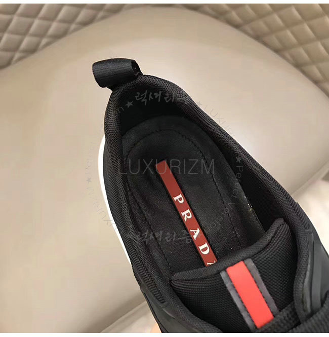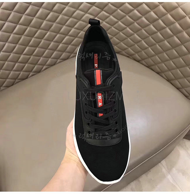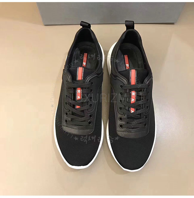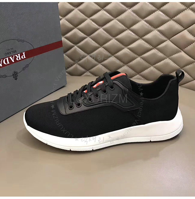 PRADA-4E3148 프라다 블랙 가죽 트림 장식의 나일론 스니커즈 남성용