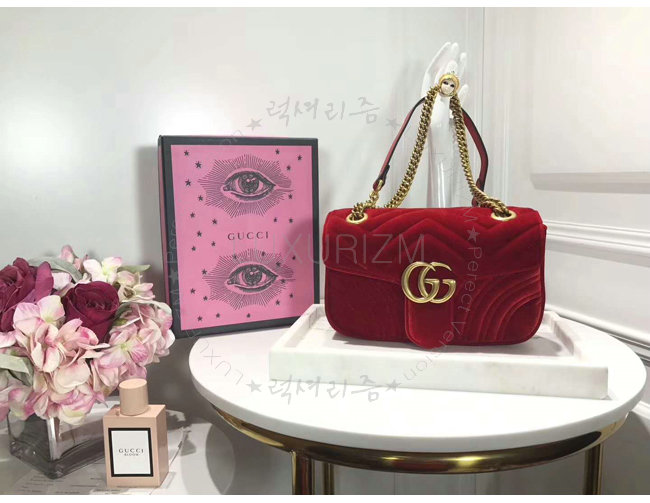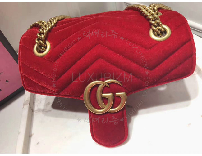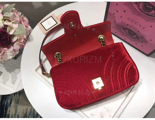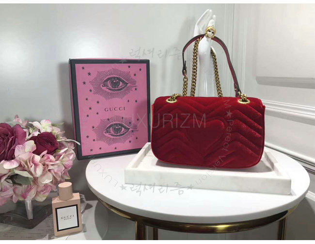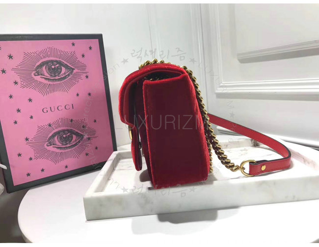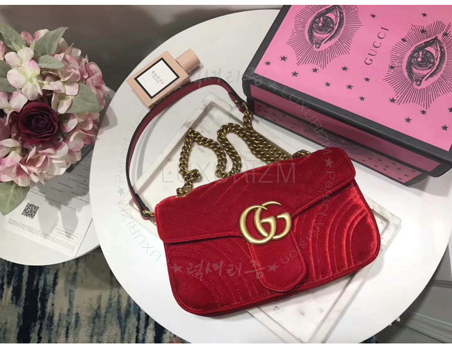 [스페셜오더]GUCCI-446744 6433 구찌 GG Marmont 마틀라세 미니 레드 벨벳 숄더백