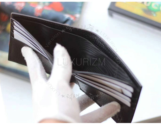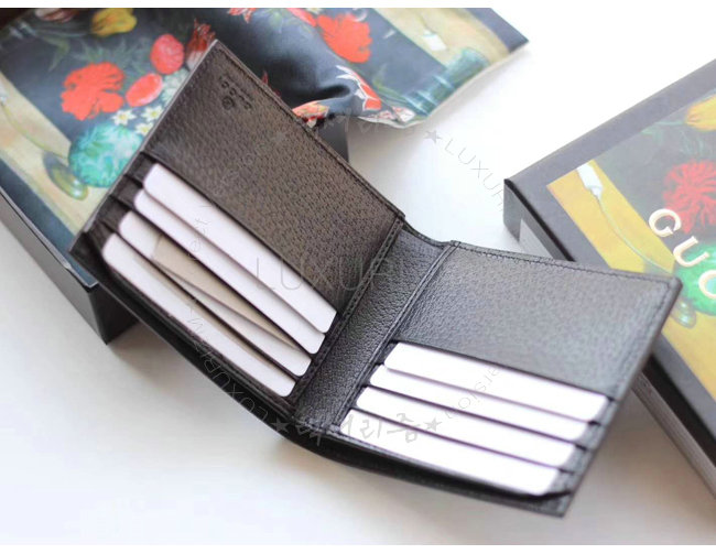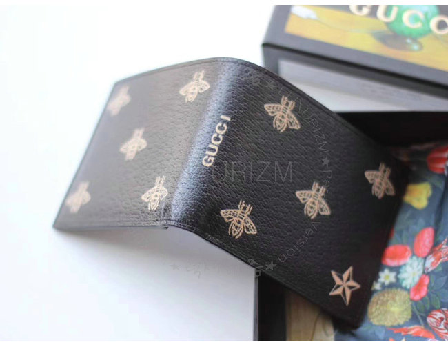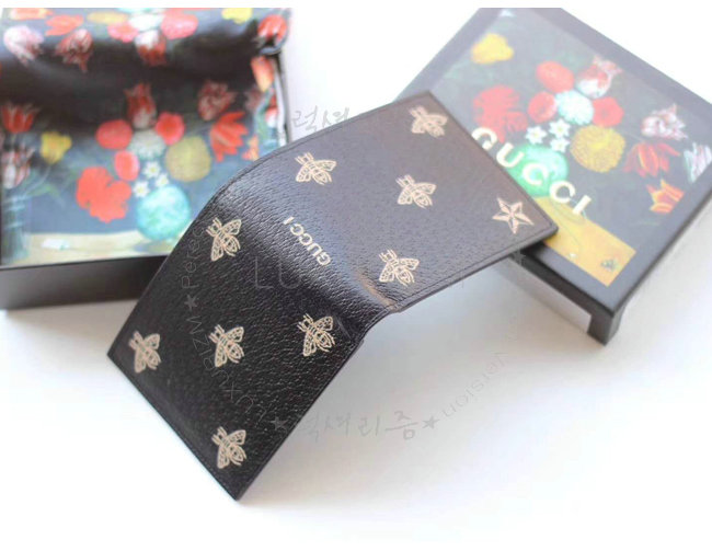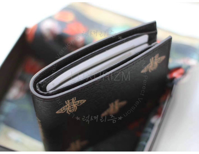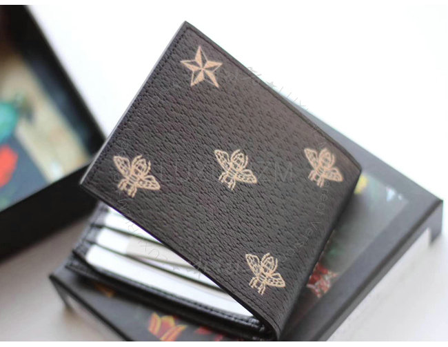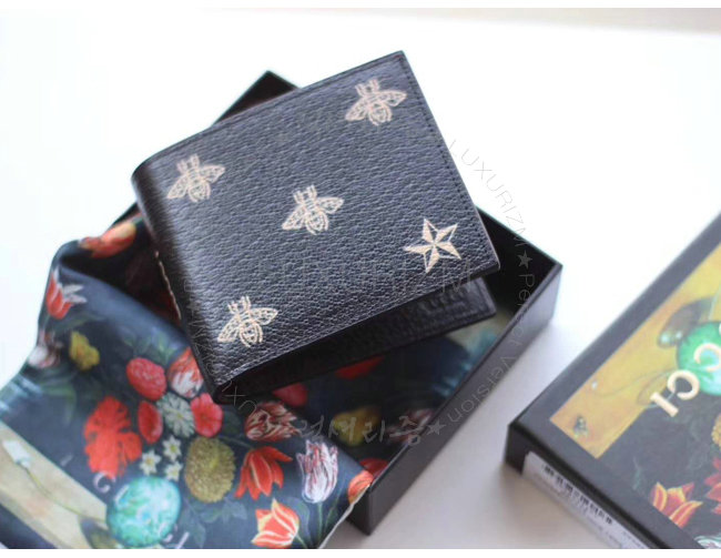 GUCCI-495055 8474 구찌 블랙 가죽 꿀벌 스타 프린트 bi-fold 월릿