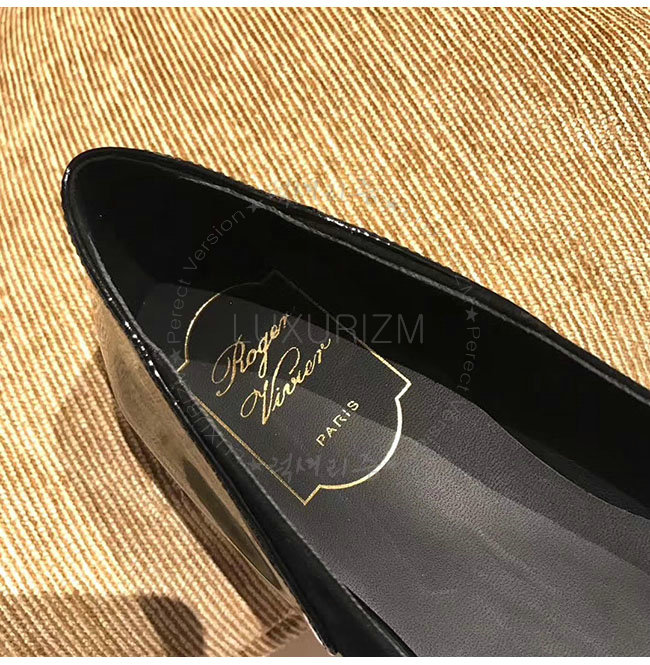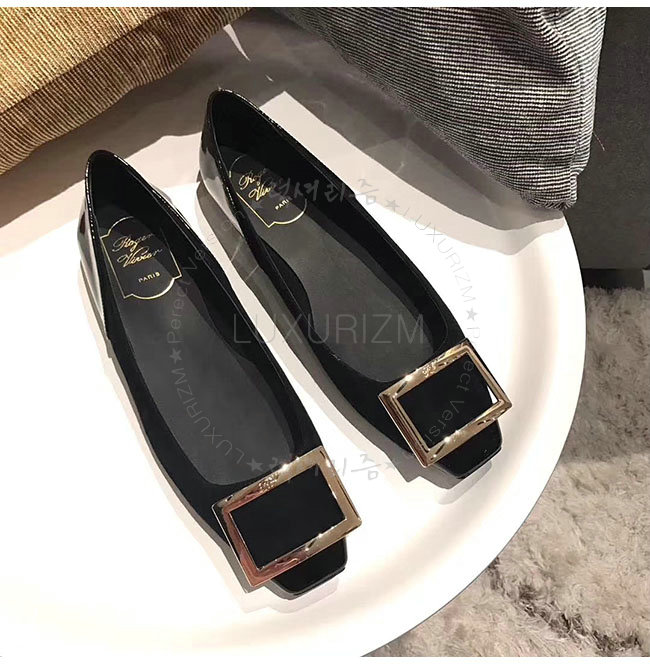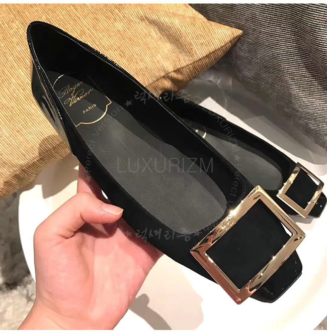 ROGER VIVIER-40018350 로저비비에 트롬 페트 페이턴트 가죽 블랙 스웨이드 발레리나 여성용
