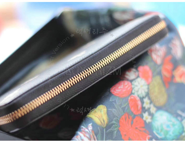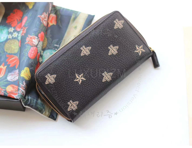 GUCCI-495062 8474 구찌 블랙 가죽 꿀벌 스타 프린트 집 어라운 월릿