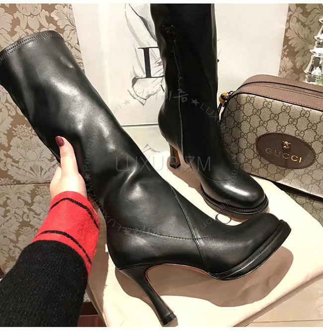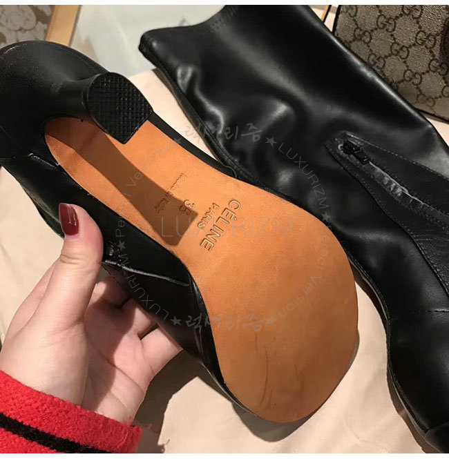 CELINE-322873 셀린느 블랙 가죽 나파 퀘어드 투 부츠 여성용