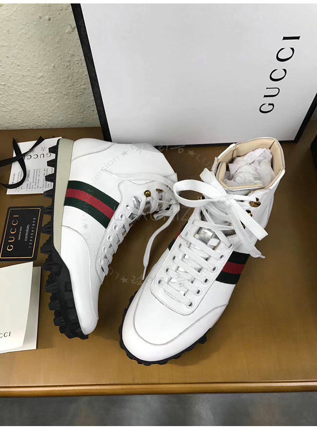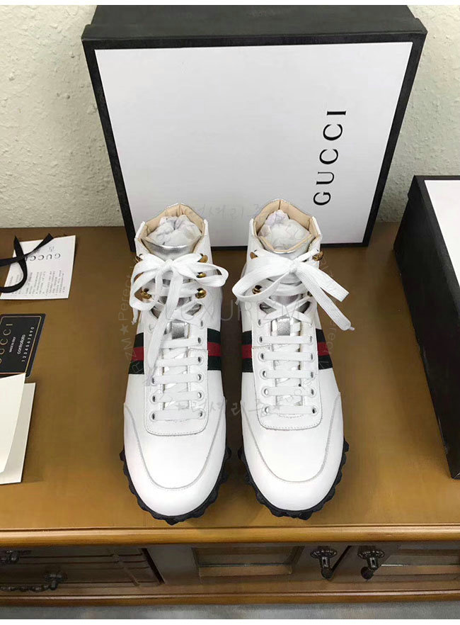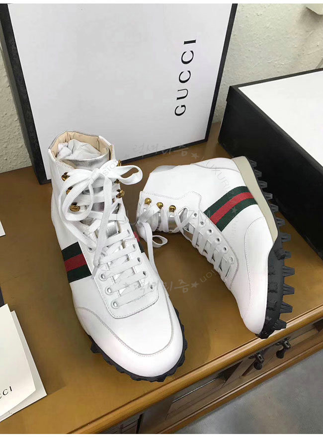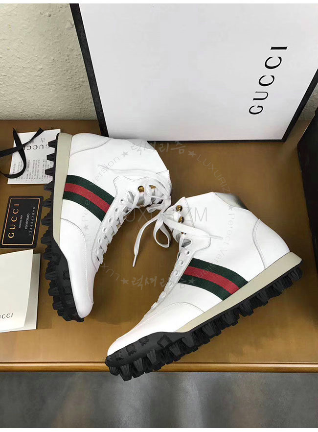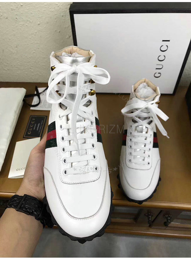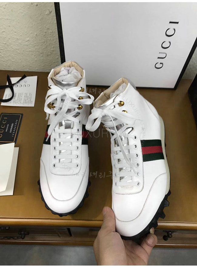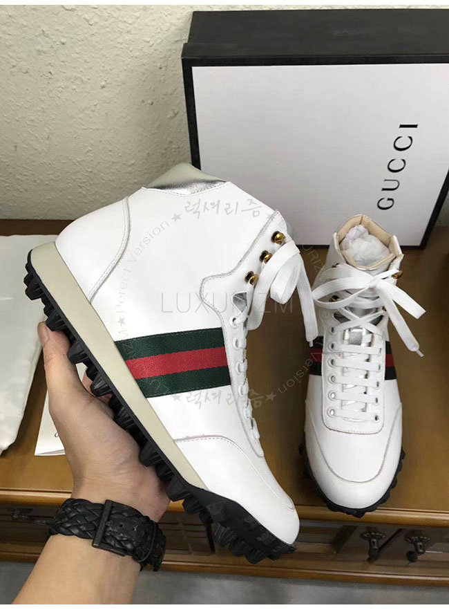 [스페셜오더]GUCCI-478182 9076 구찌 웹 화이트 가죽 하이탑 스니커즈 남성용
