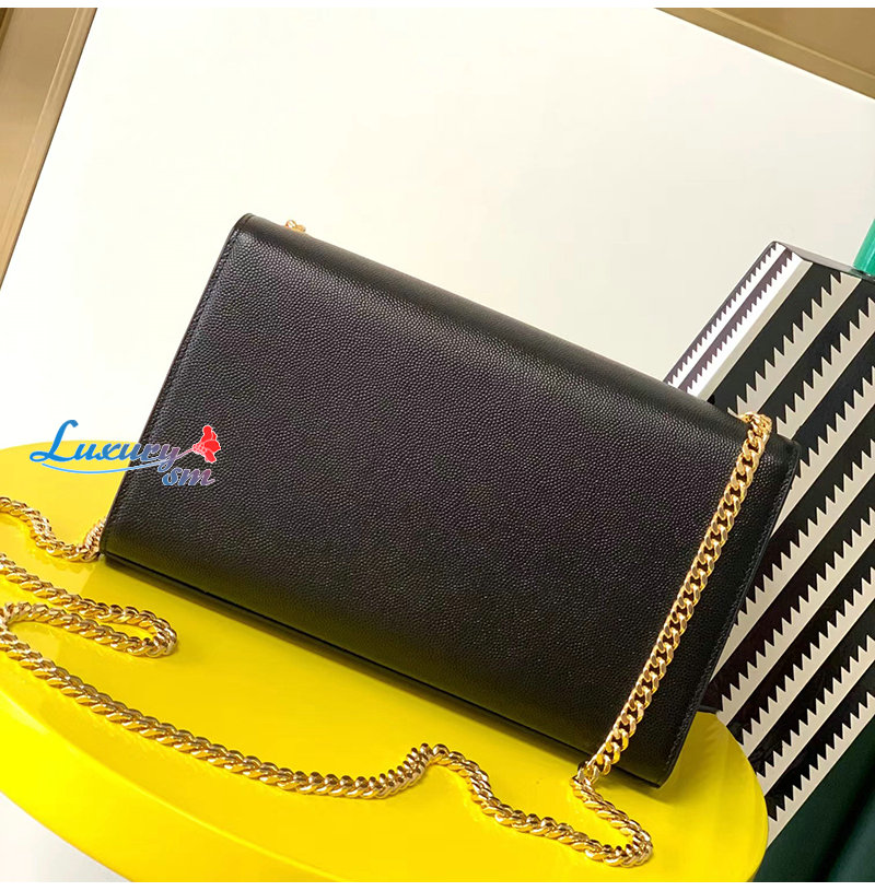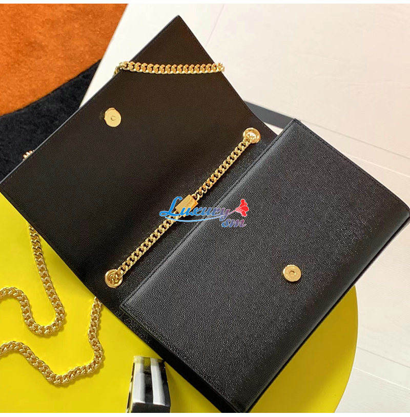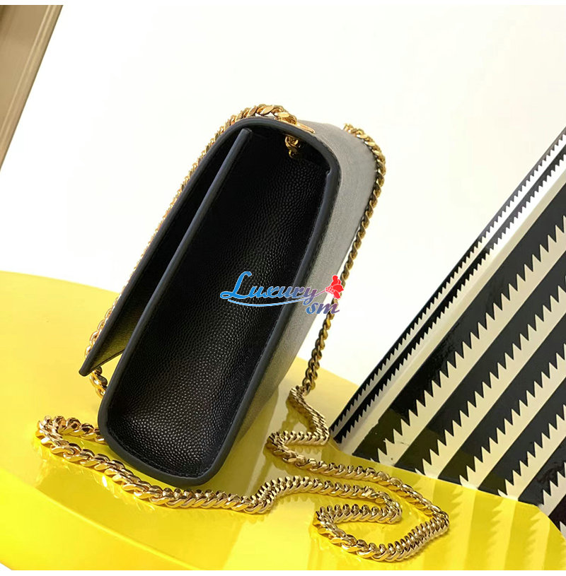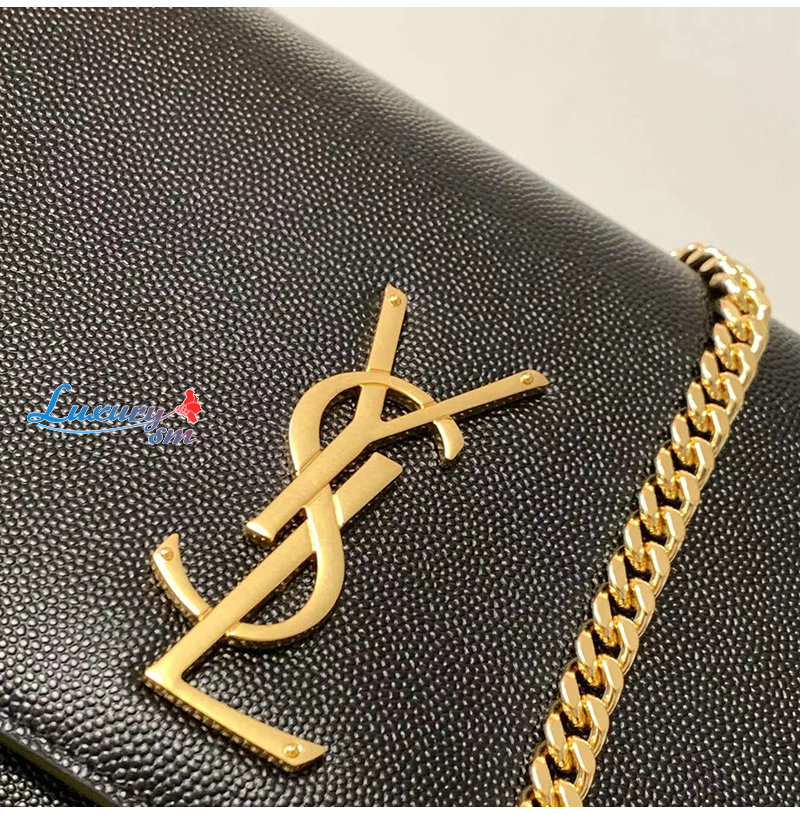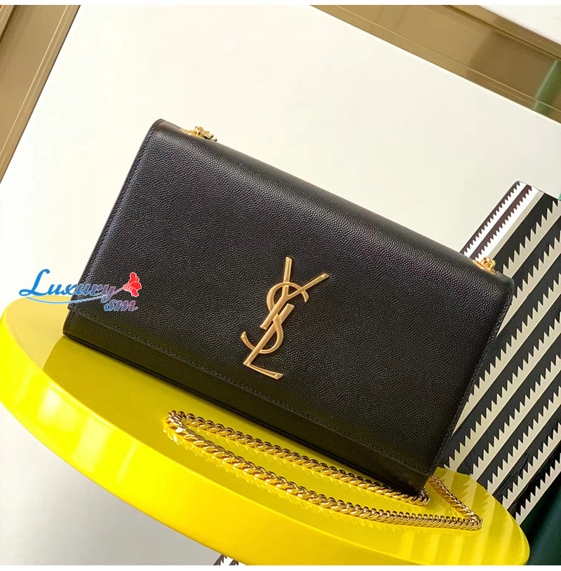 [스페셜오더]SAINT LAURENT-364021 생로랑 블랙 그랑 드 뿌드르 텍스처드 가죽 소재의 클래식 미디엄 케이트 금장 사첼 백