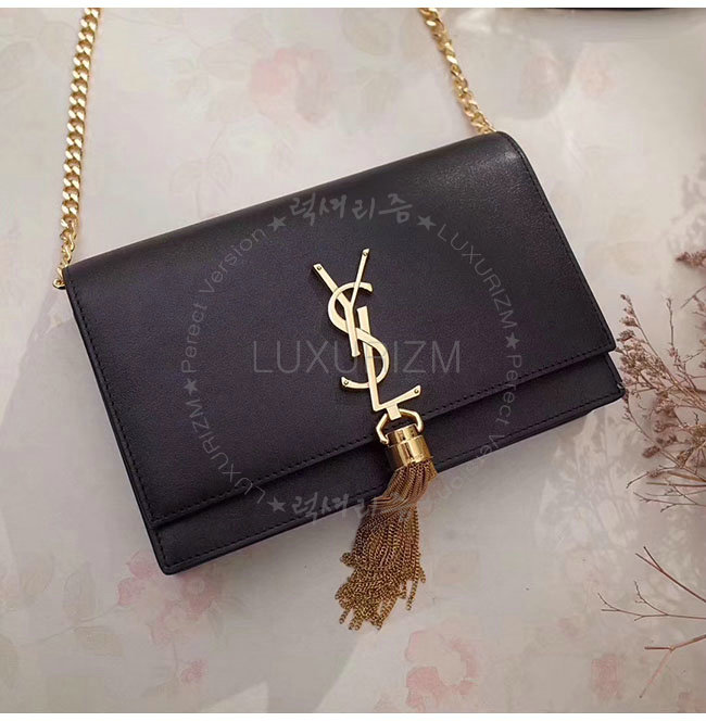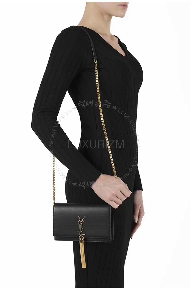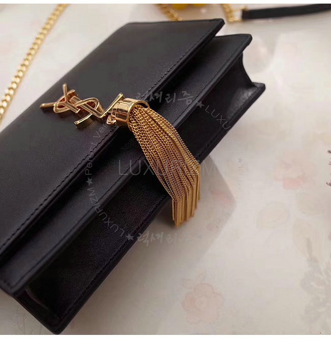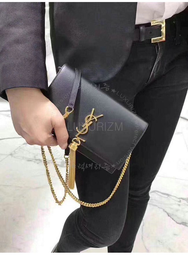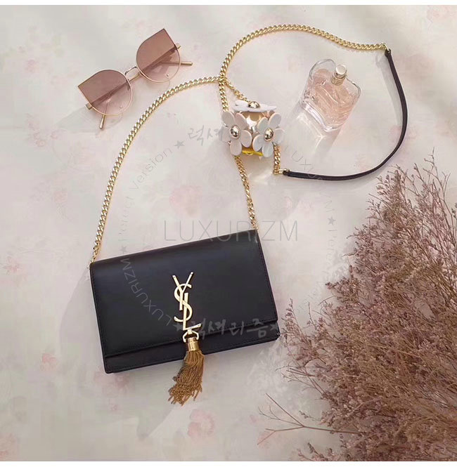 [스페셜오더]SAINT LAURENT-452159 생 로랑 부드러운 블랙 가죽 소재의 케이트 체인 태슬 사첼 백