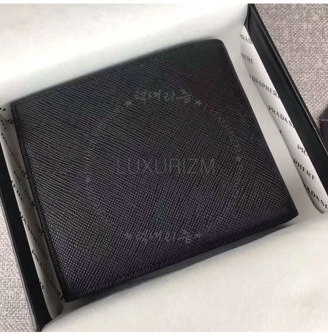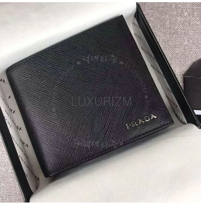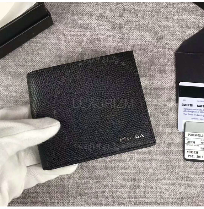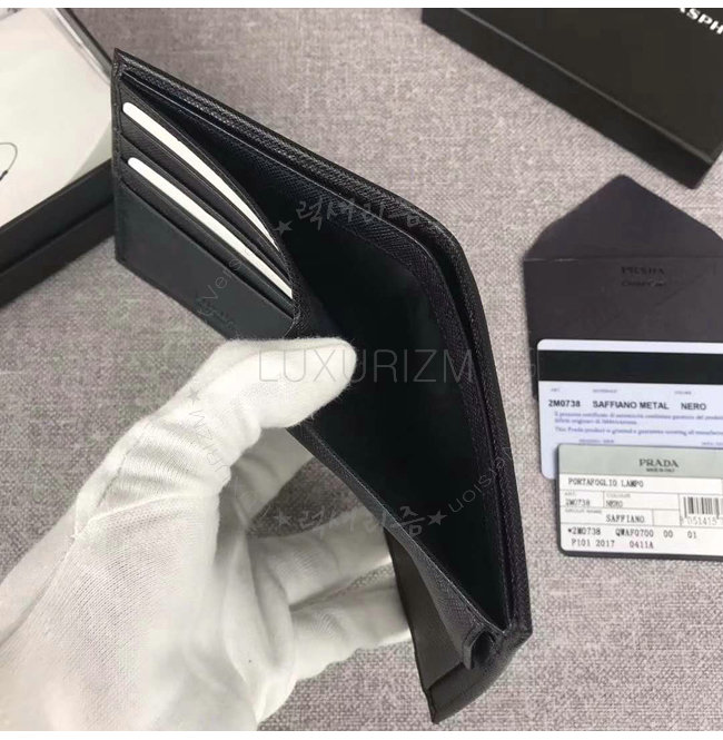 [스페셜오더]PRADA-2MO738 프라다 사피아노 가죽 메탈 로고 블랙 반지갑