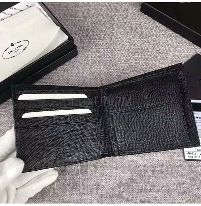PRADA-2MO738 프라다 사피아노 가죽 메탈 로고 블랙 반지갑