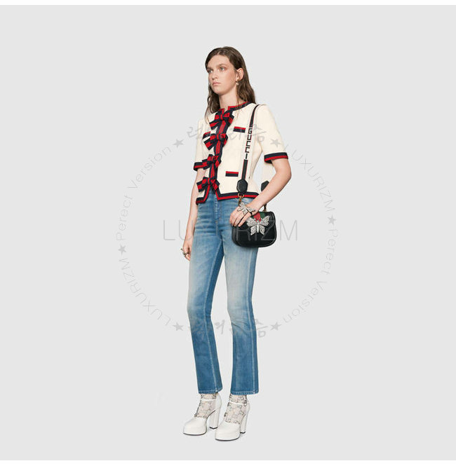 그린/레드 Web 디테일 크리스탈 디테일의 메탈 나비 구찌 자카드