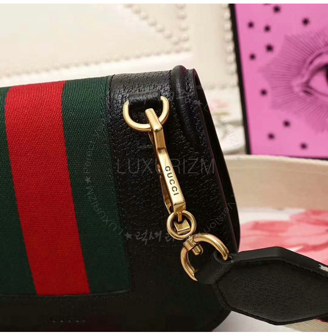 모티브.시그니처 Web스트라이프 디테일 및 구찌 자카드 스트라이프 숄더스트랩 장식.