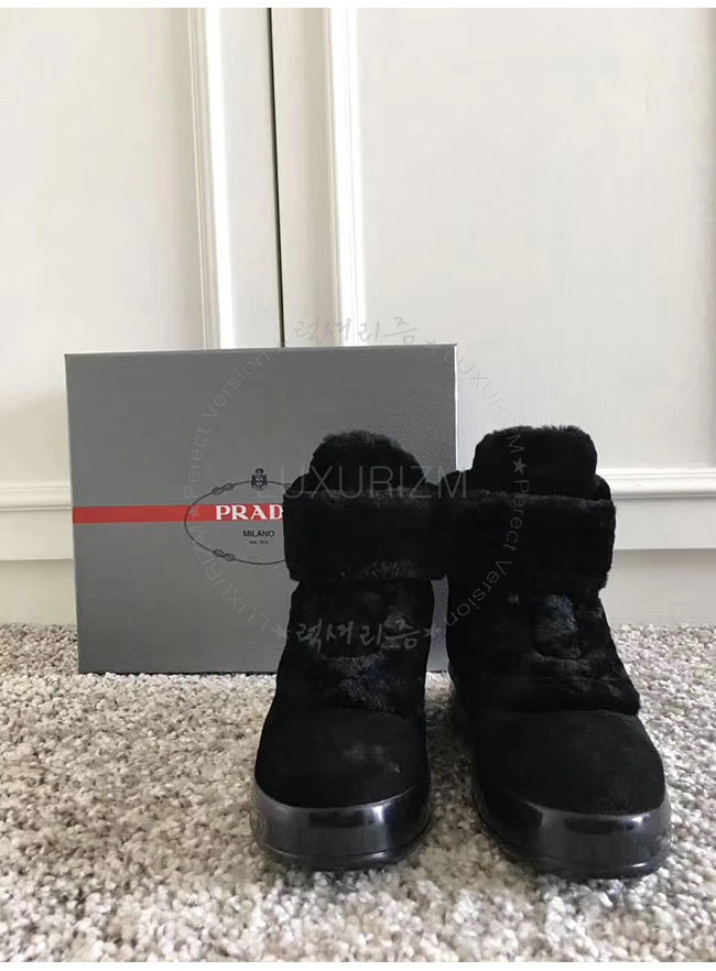 PRADA-1D122B 프라다 블랙 양털 부츠 여성용