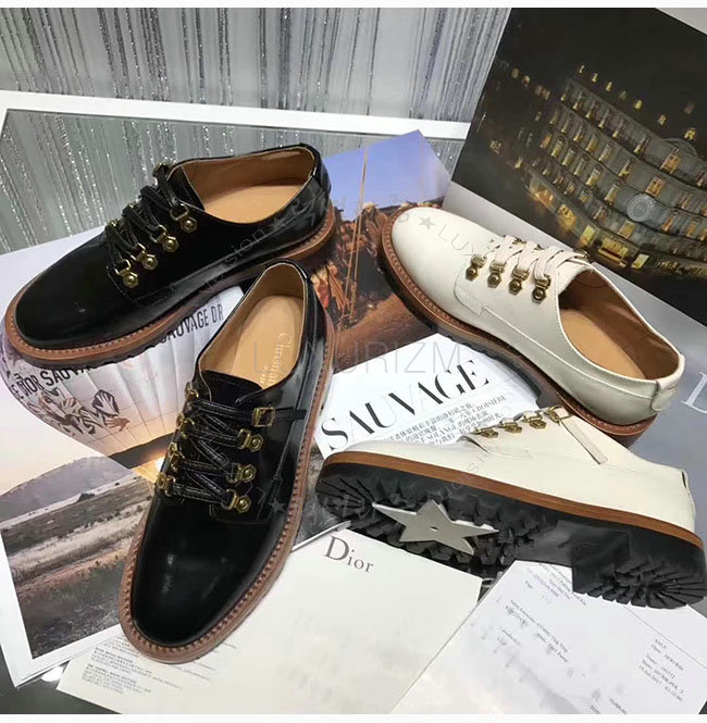 DIOR-KDL024 디올 화이트 가죽 더비 슈즈 여성용
