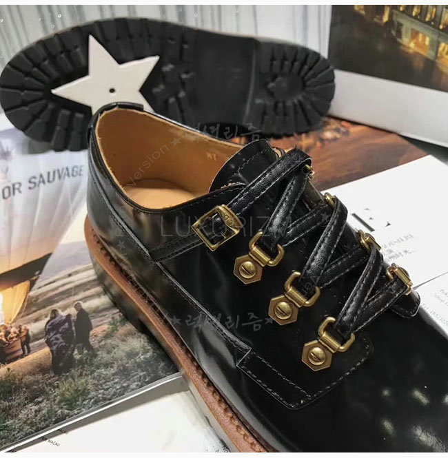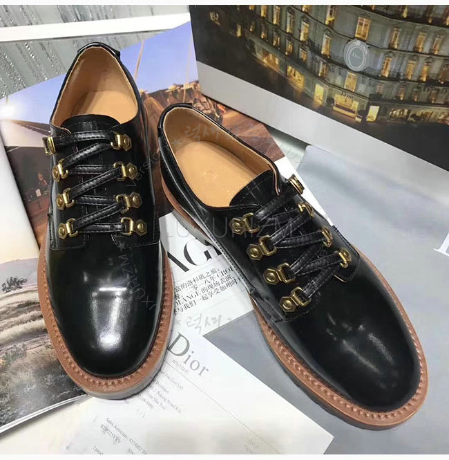 DIOR-KDL024 디올 블랙 가죽 더비 슈즈 여성용
