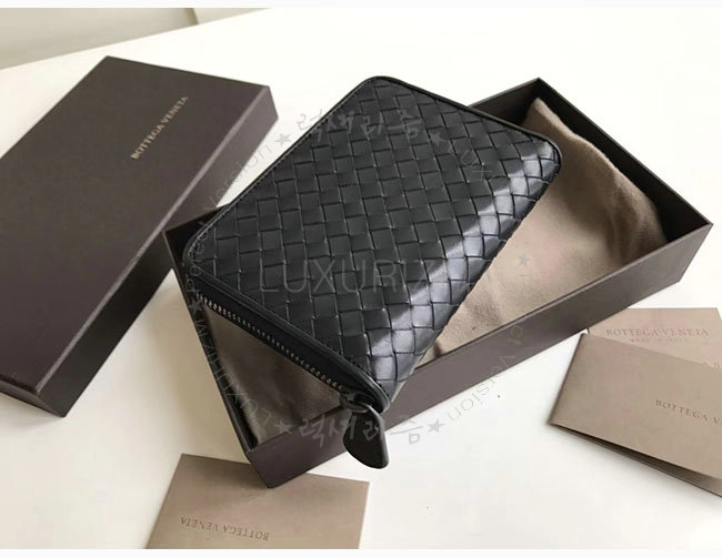 #보테가베네타지갑추천 명품지갑쇼핑몰추천 럭셔리즘 [스페셜오더]BOTTEGA VENETA-464850 보테가 베네타 블랙 인트레치아토 나파 가죽 짚 어라운드 지갑