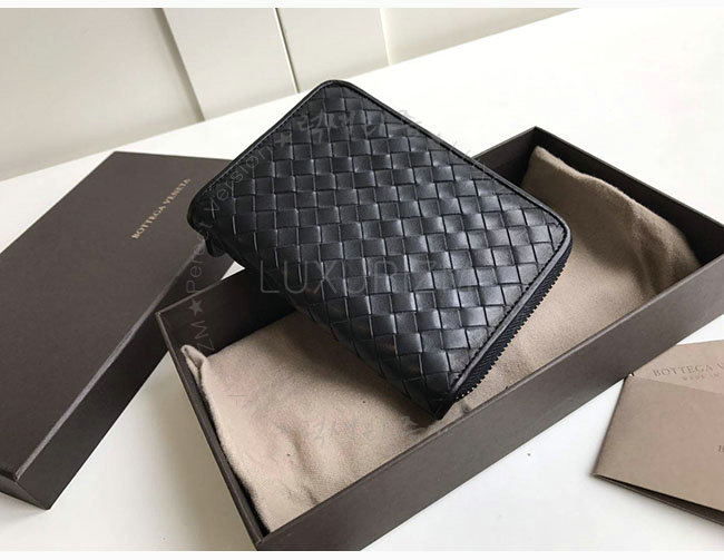 [스페셜오더]BOTTEGA VENETA-464850 보테가 베네타 블랙 인트레치아토 나파 가죽 짚 어라운드 지갑