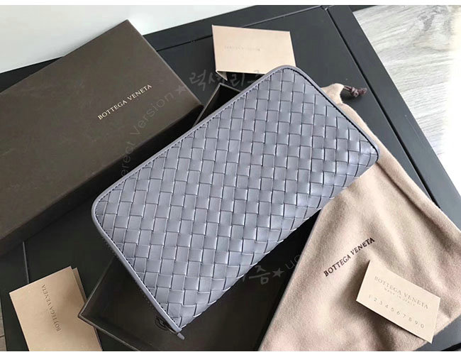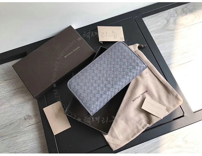 [스페셜오더]BOTTEGA VENETA-114076 보테가 베네타 그레이 인트레치아토 나파 짚 어라운드 지갑
