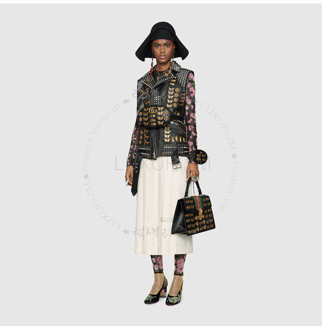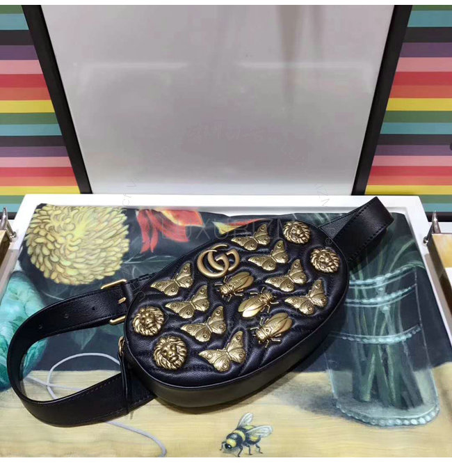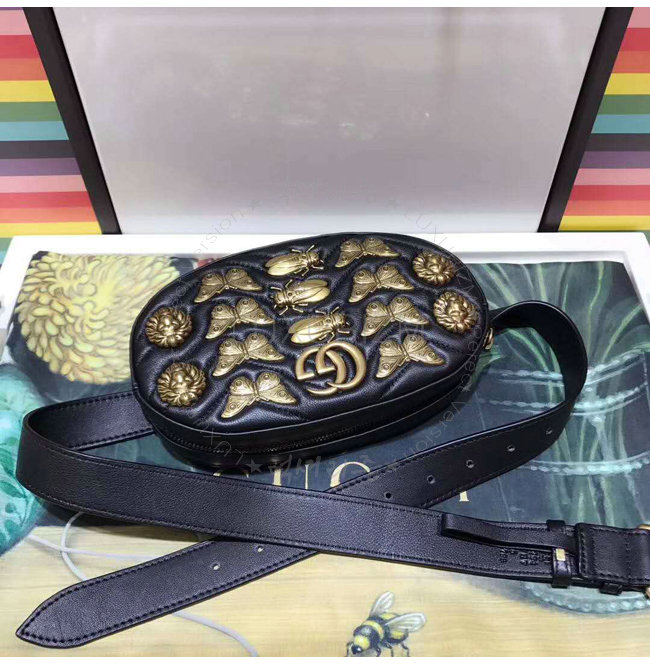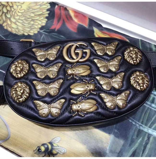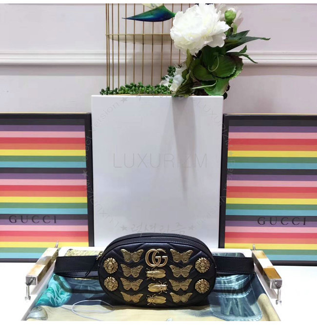 [스페셜오더]GUCCI-491294 1000 구찌 GG Marmont 애니멀 스터드 블랙 가죽 벨트 백