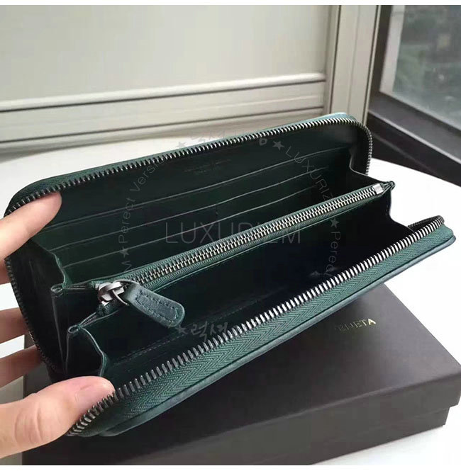 [스페셜오더]BOTTEGA VENETA-114076 보테가 베네타 그린 인트레치아토 VN 짚 어라운드 지갑