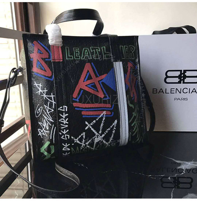 [스페셜오더]BALENCIAGA-443096 발렌시아가 프린트 아레나 가죽 그래피티 바자 쇼퍼 S