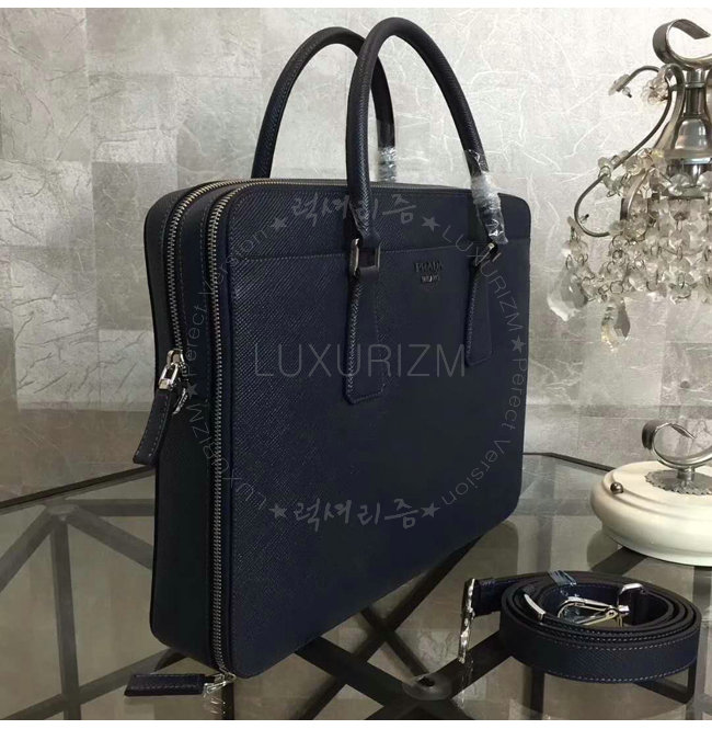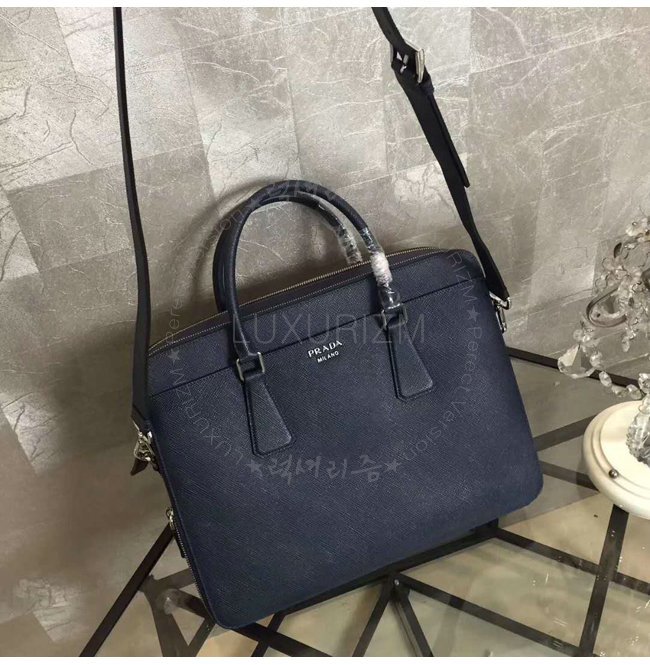 [스페셜오더]PRADA-2VE366 프라다 사피아노 가죽 발틱 블루 브리프케이스