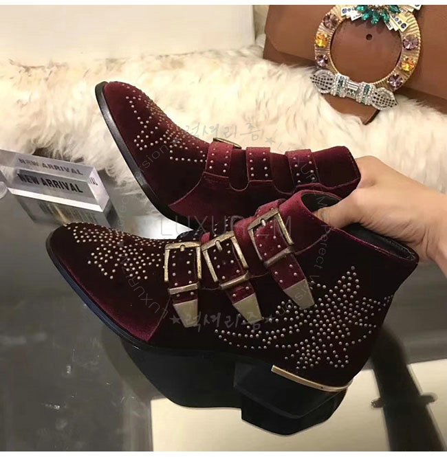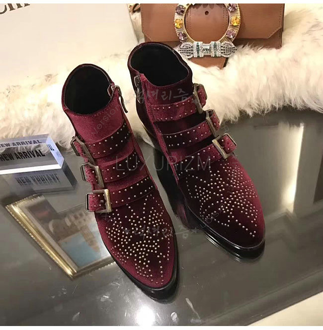 CHLOE-CH24134 끌로에 수산나 레드 벨벳 앵클 부츠 여성용