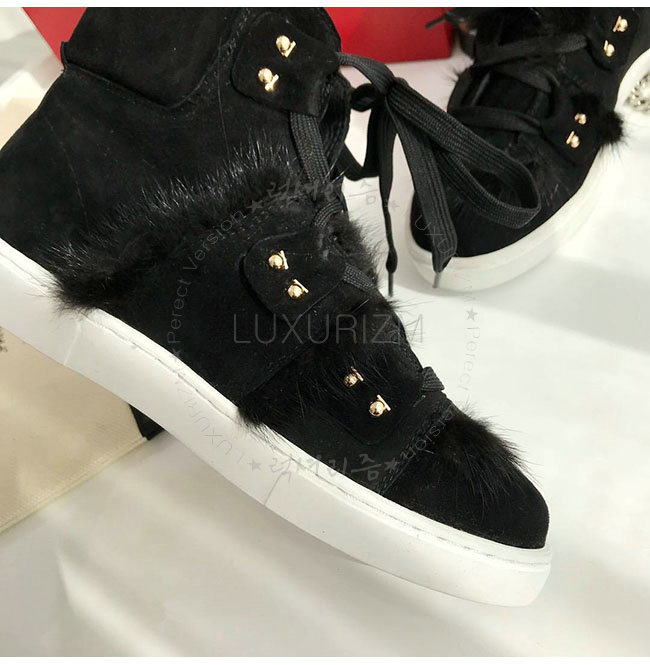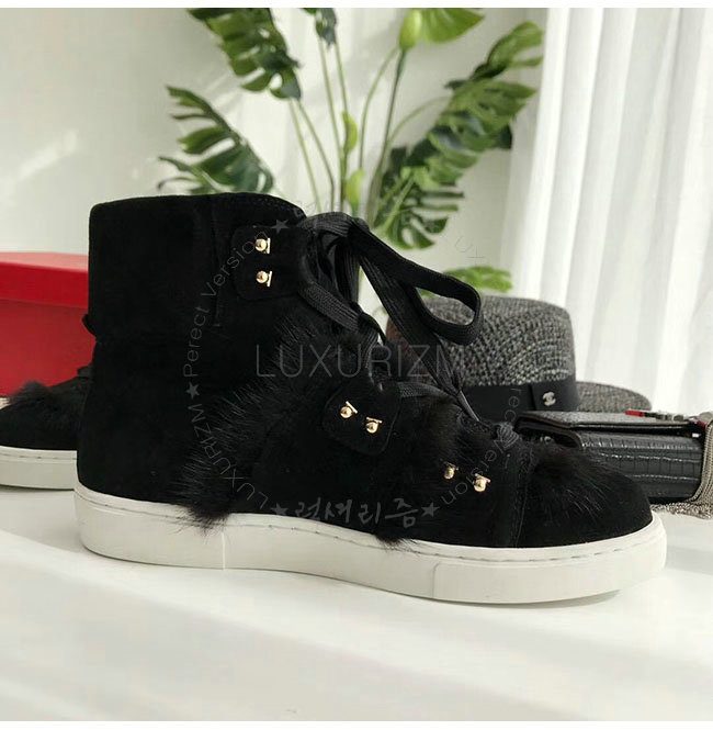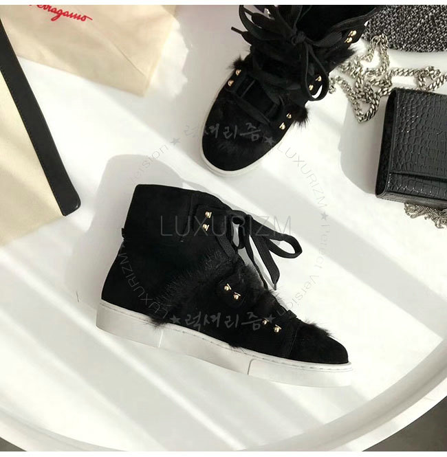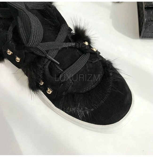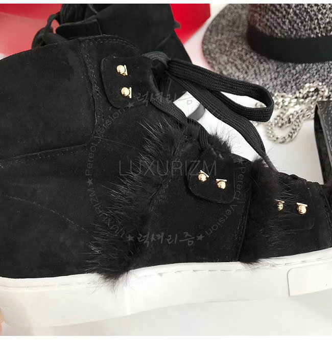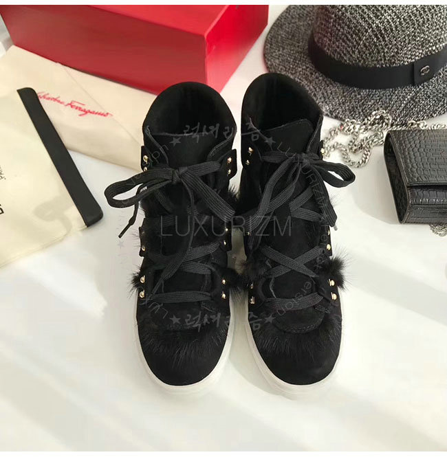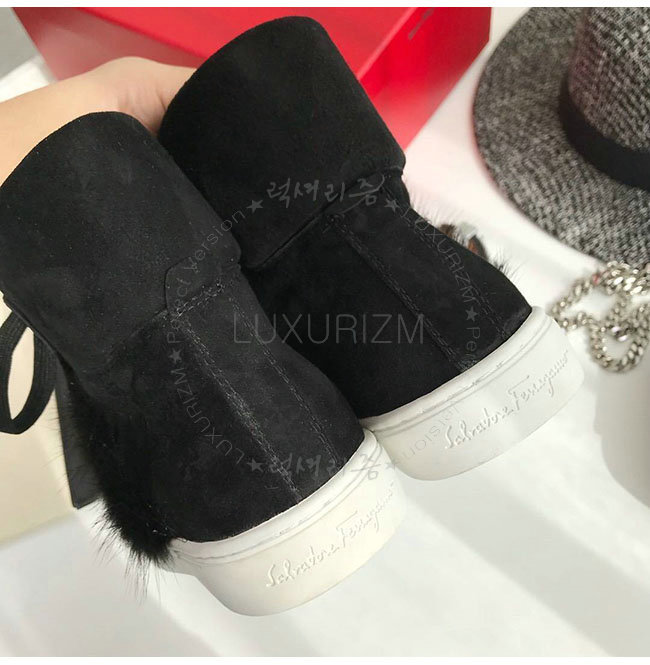 FERRAGAMO-035025 페라가모 블랙 스웨이드 가죽 밍크 털 하이 스니커 부츠 여성용