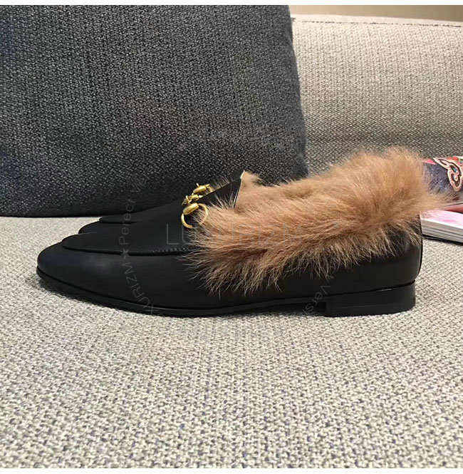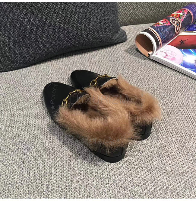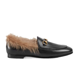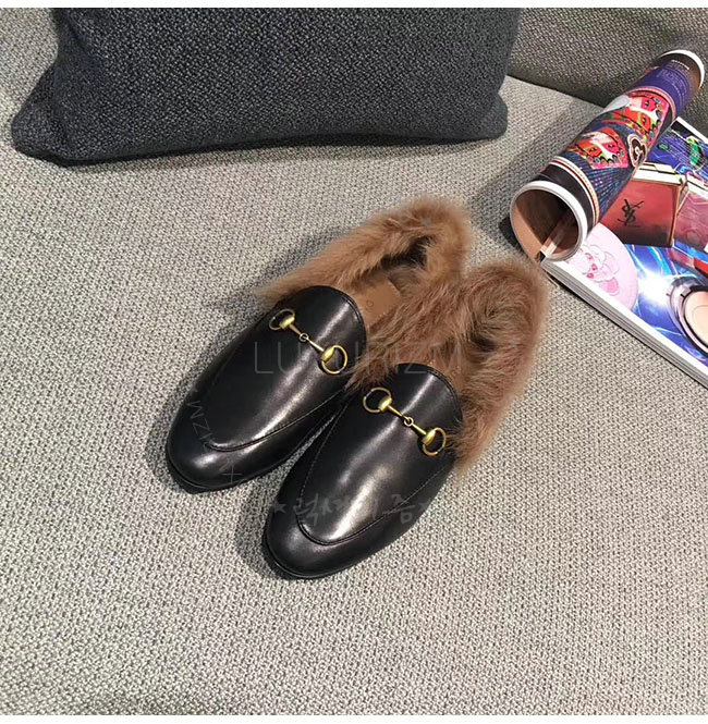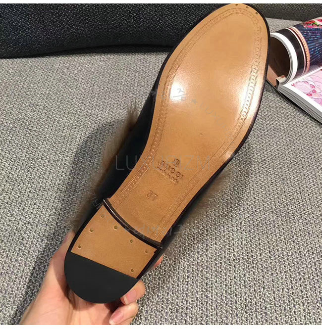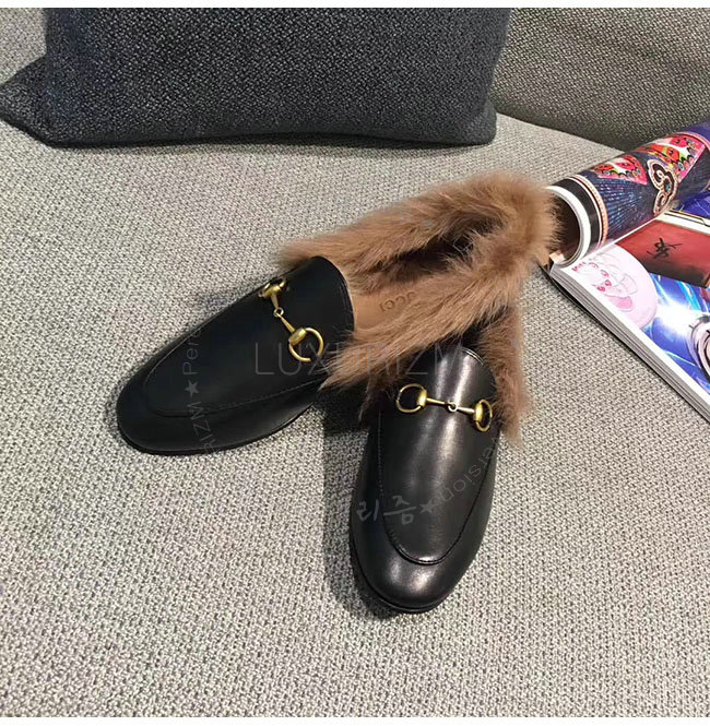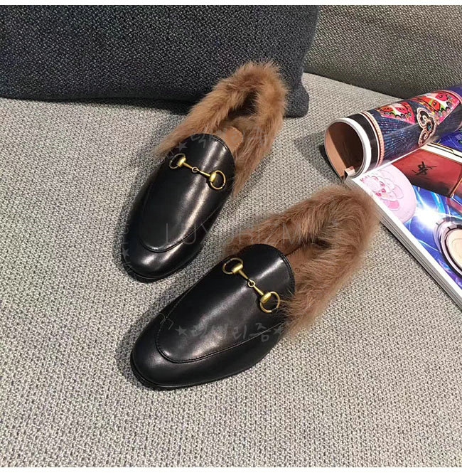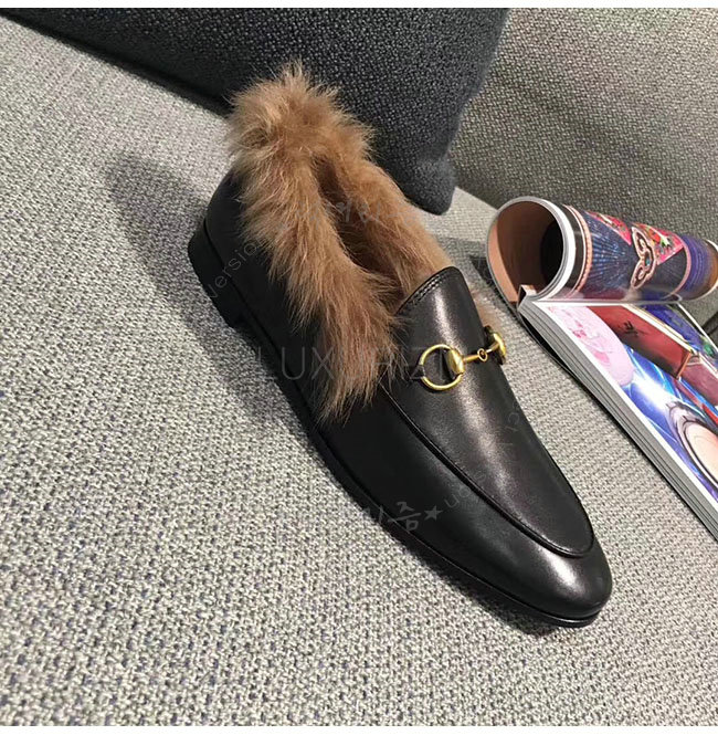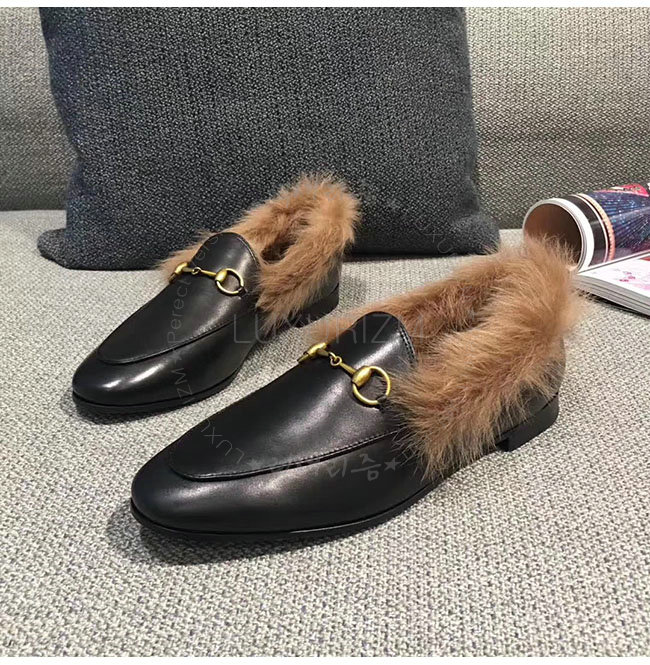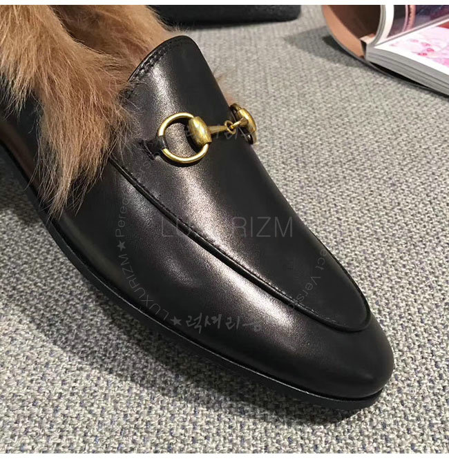 [스페셜오더]GUCCI-496626 1063 구찌 블랙 가죽 요르단 퍼 로퍼 여성용