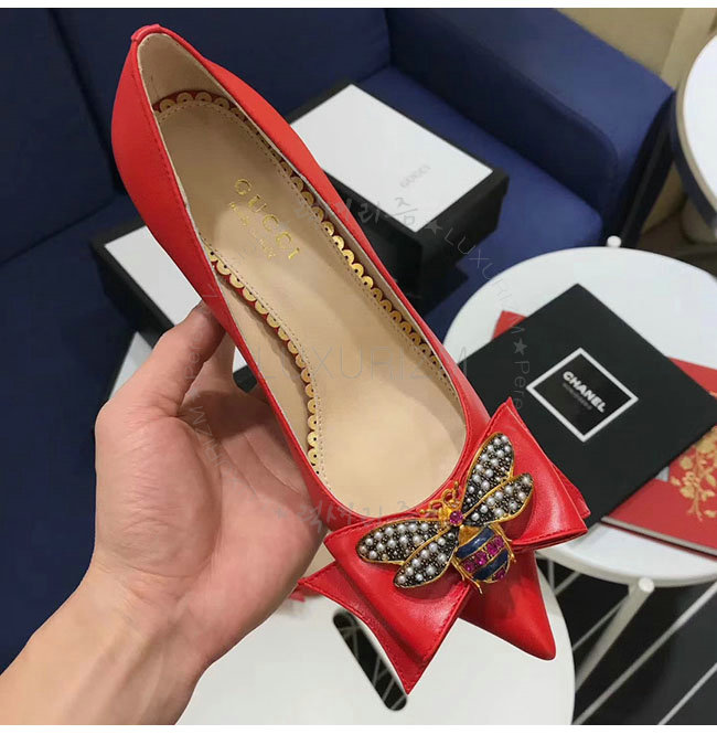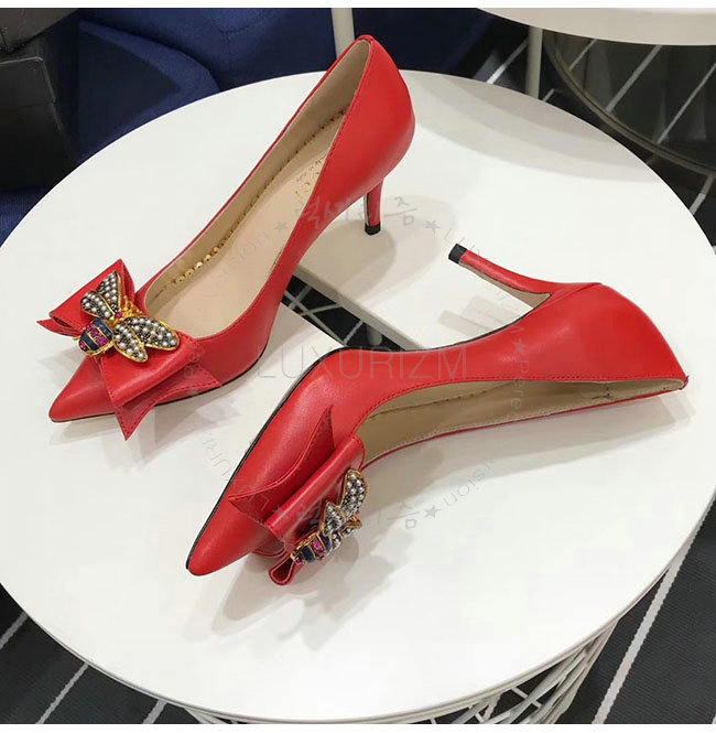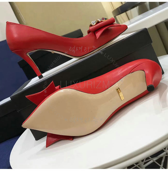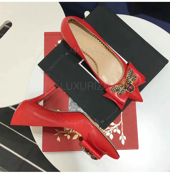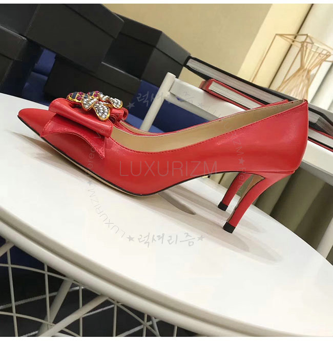 #구찌힐 구찌여성신발 명품힐추천 이미테이션신발쇼핑몰 럭셔리즘 GUCCI-496641 6433 구찌 레드 보우 디테일의 가죽 미드힐 펌프스 여성용