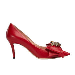 GUCCI-496641 6433 구찌 레드 보우 디테일의 가죽 미드힐 펌프스 여성용