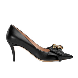 GUCCI-496641 1000 구찌 블랙 보우 디테일의 가죽 미드힐 펌프스 여성용